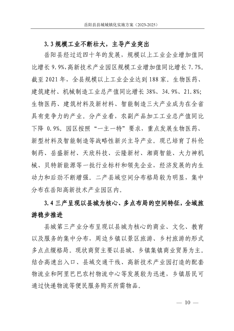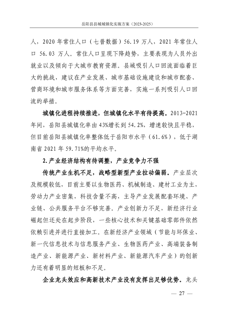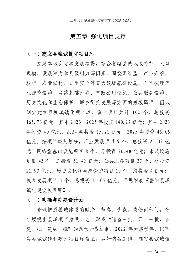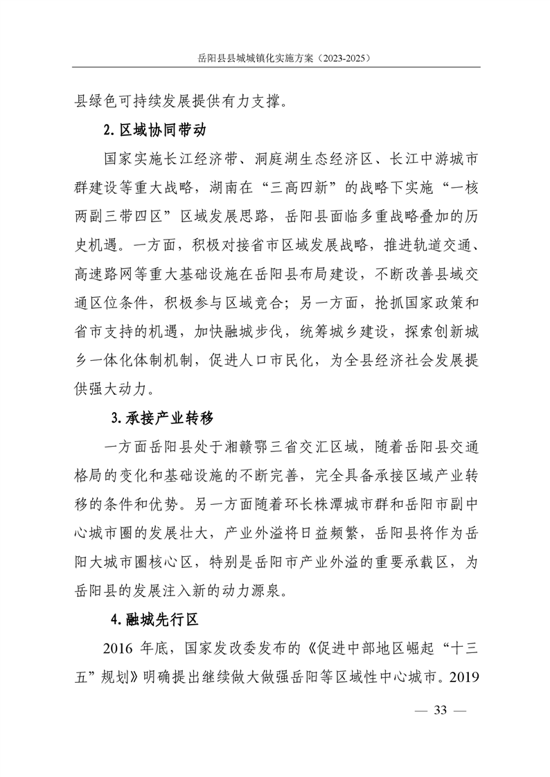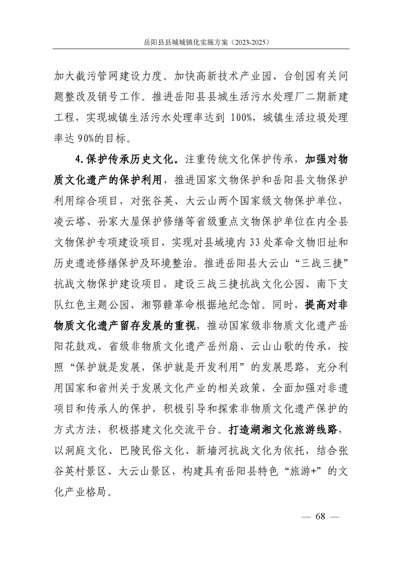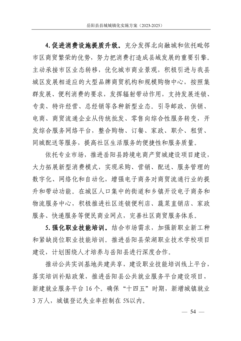 關於印發《嶽陽縣縣城城鎮化實施方案(2023-2025)》的通知
