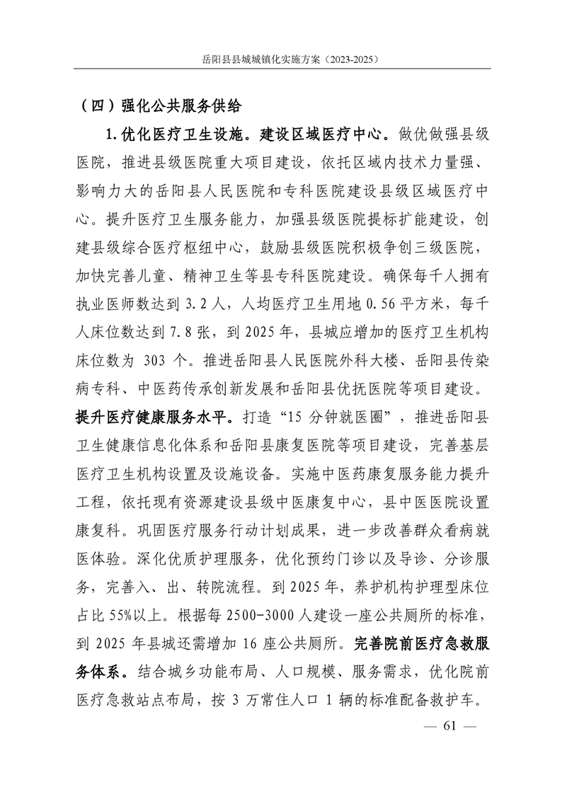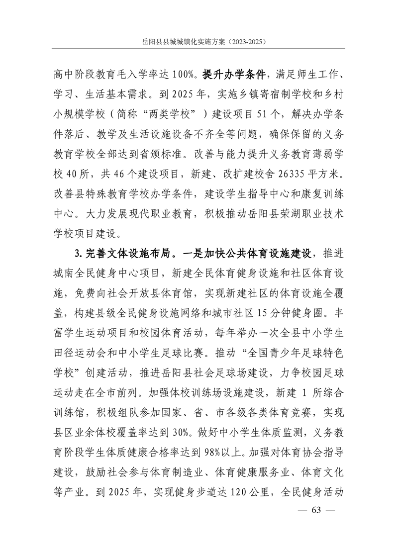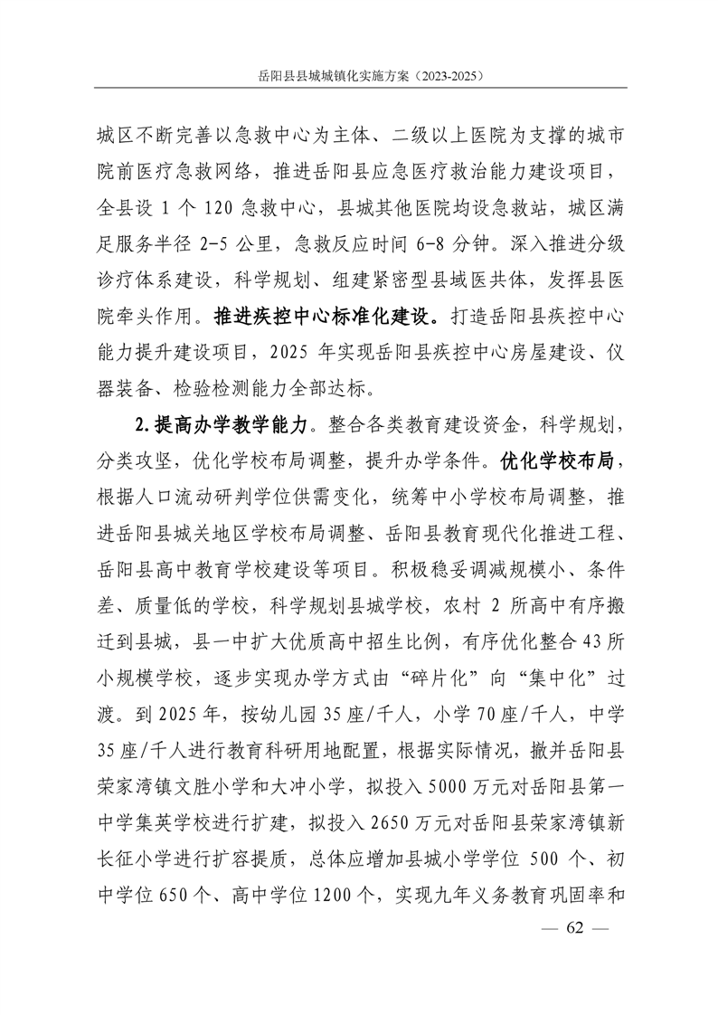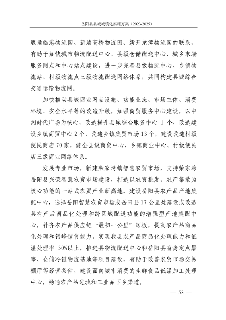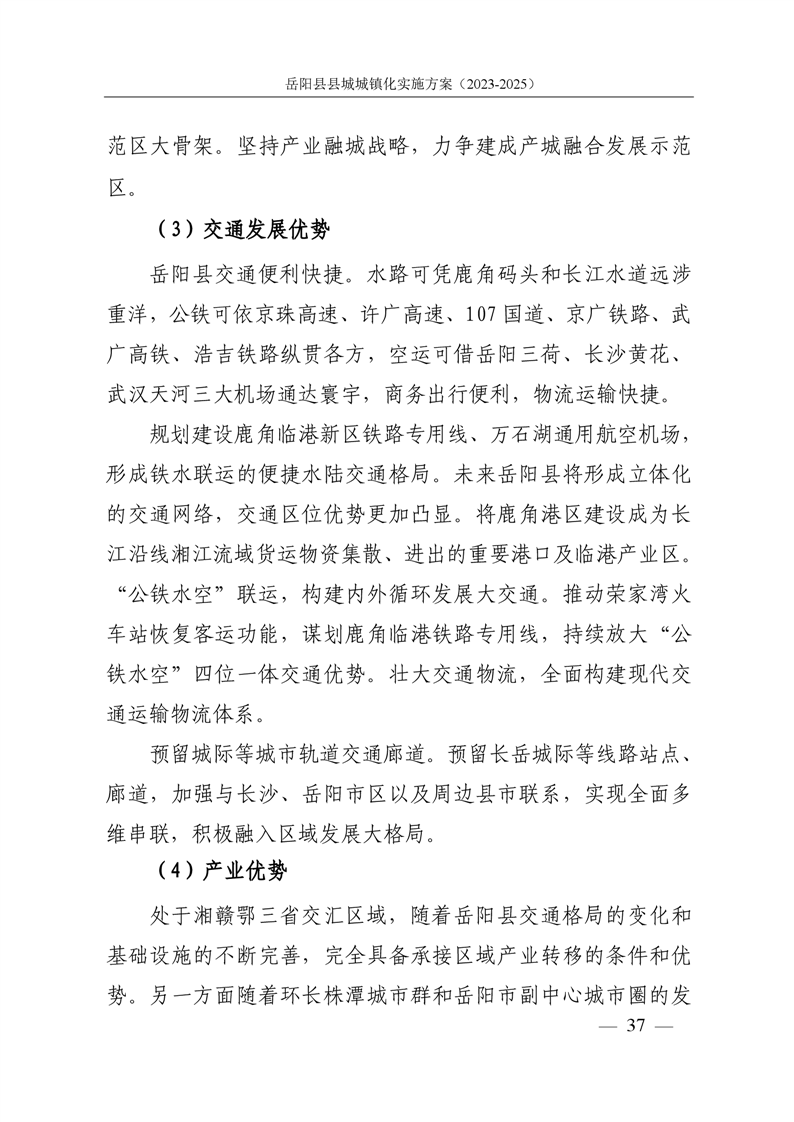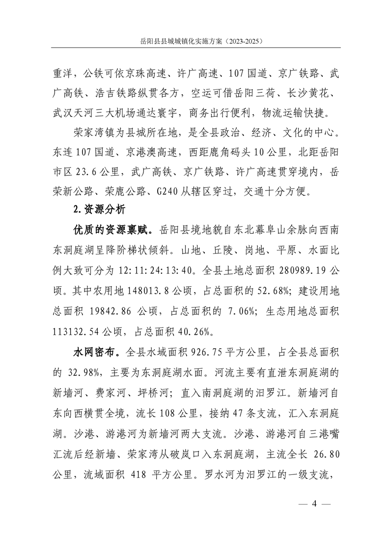 關於印發《嶽陽縣縣城城鎮化實施方案(2023-2025)》的通知