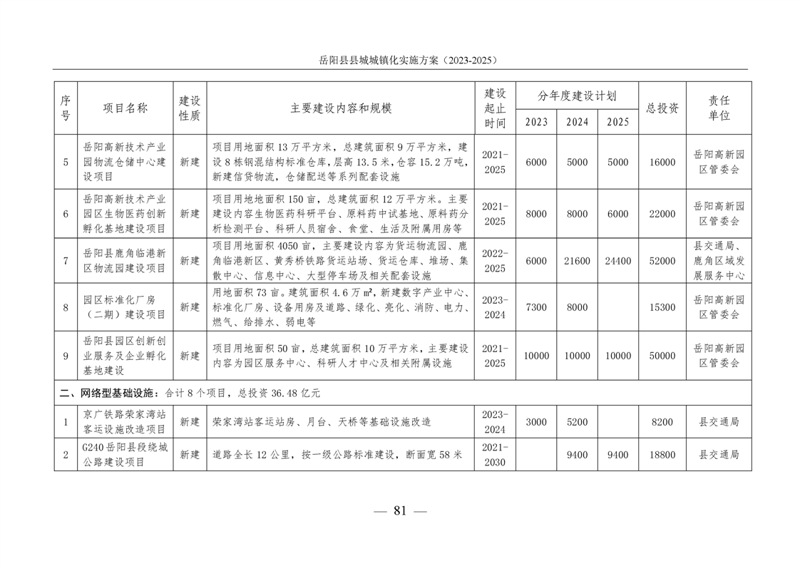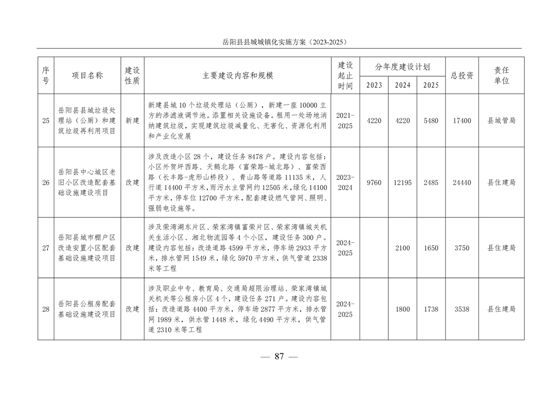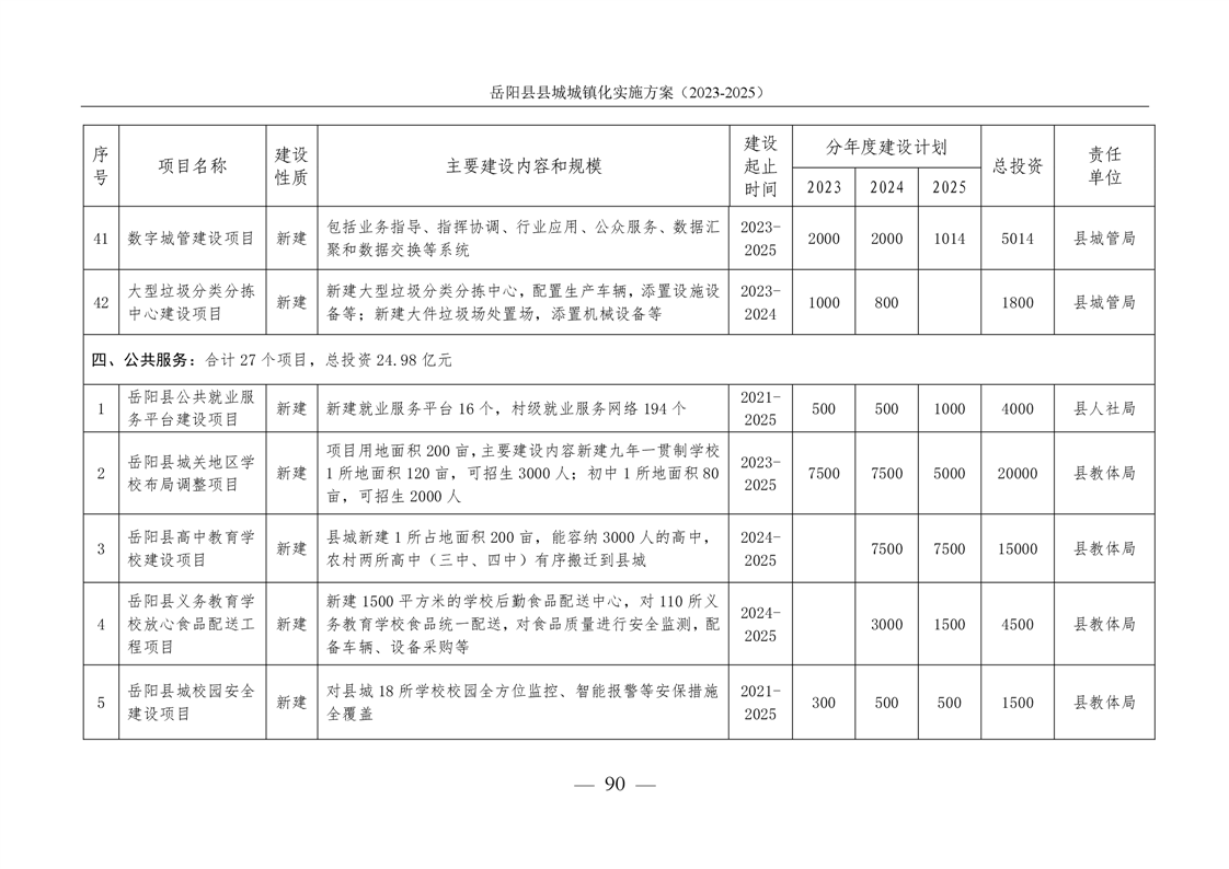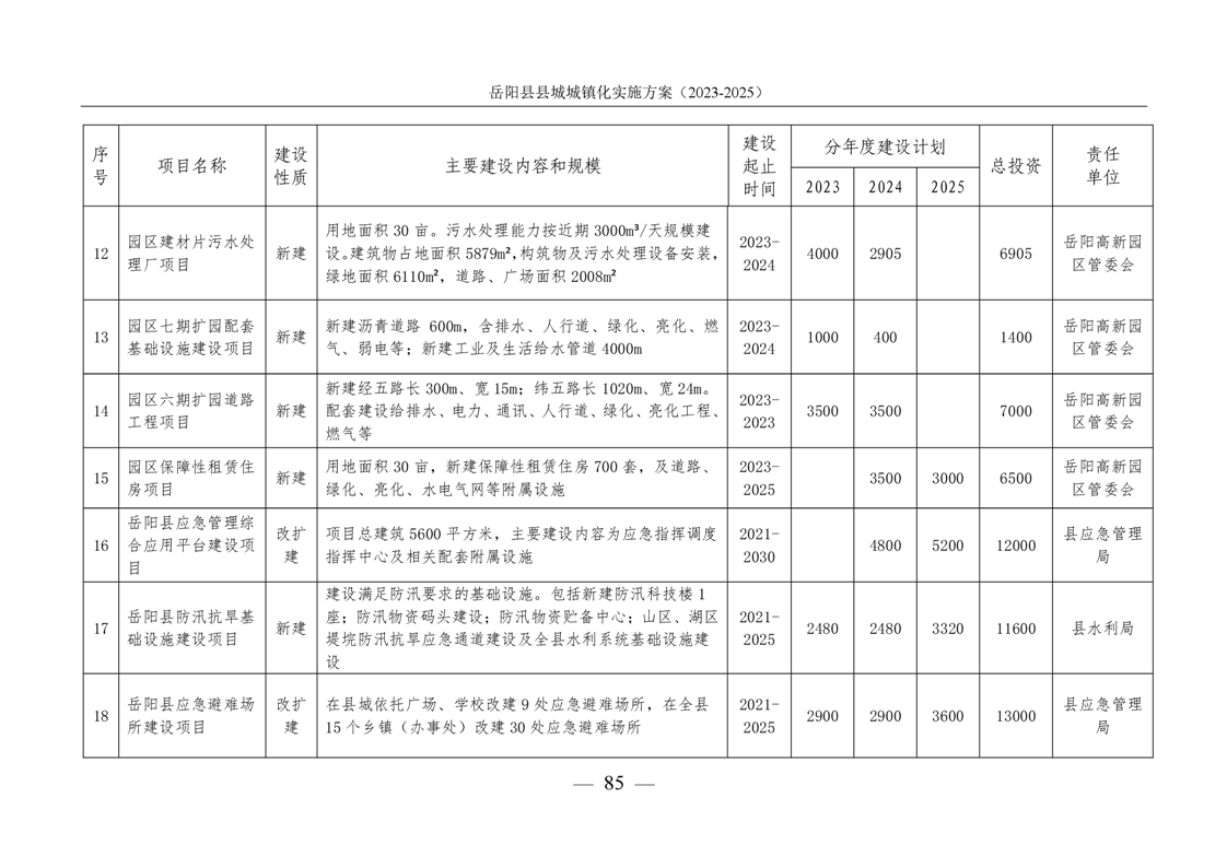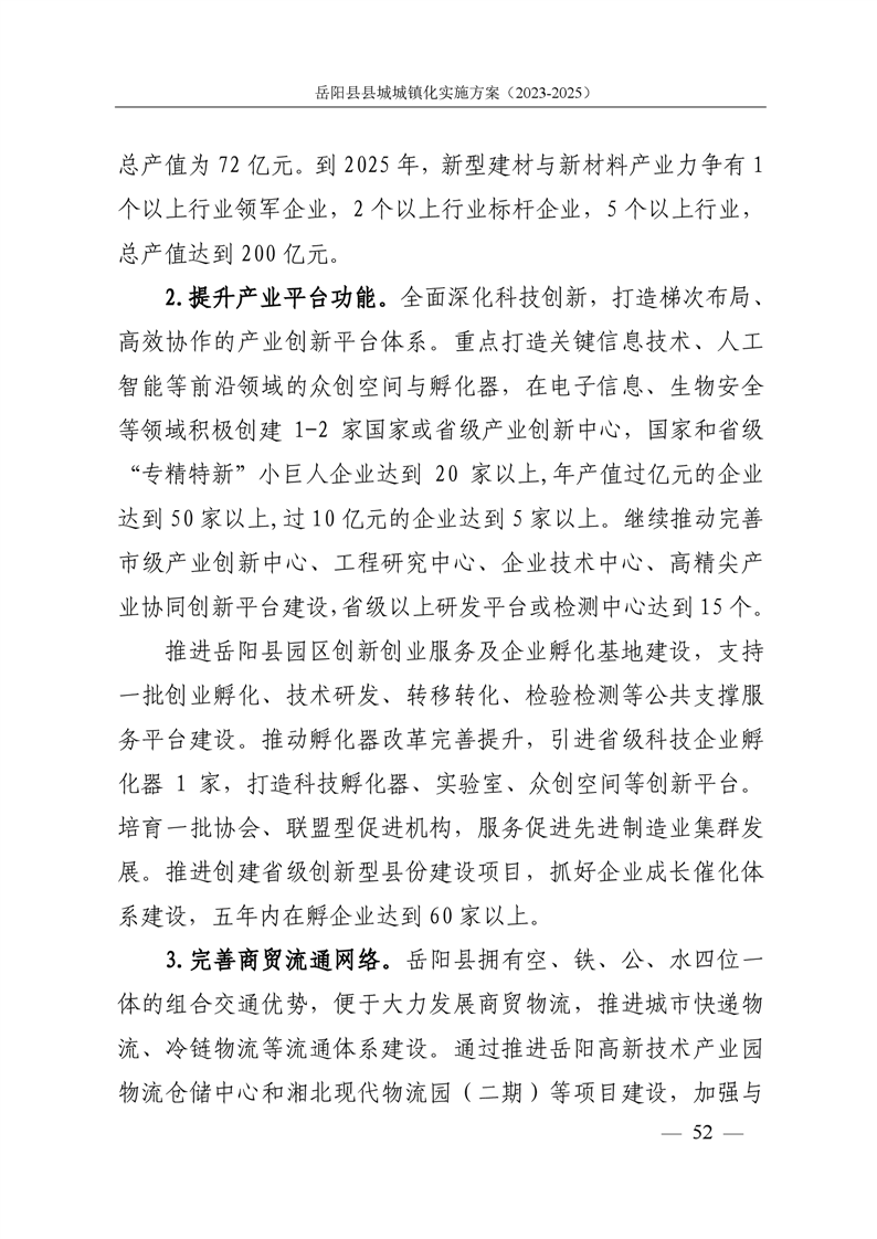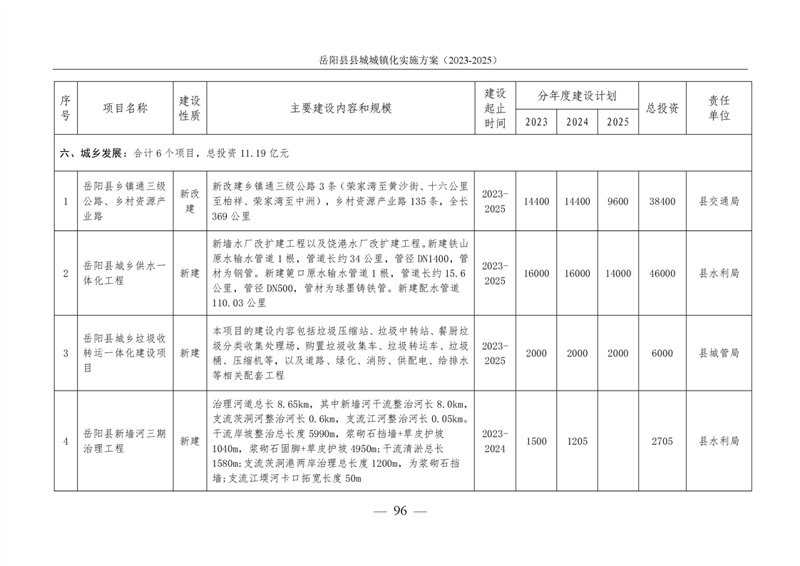 關於印發《嶽陽縣縣城城鎮化實施方案(2023-2025)》的通知