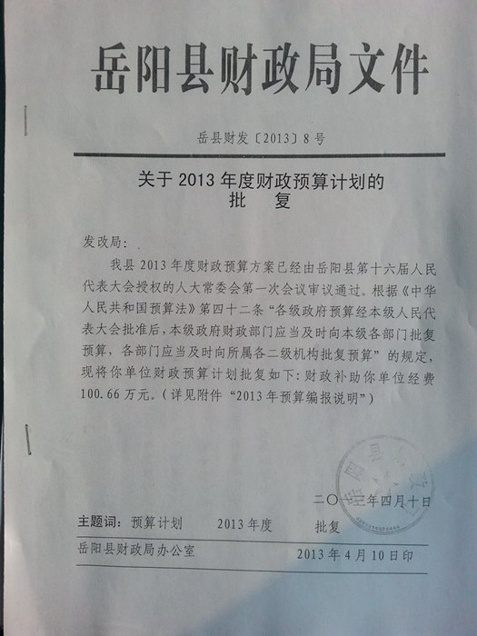 縣發改局2013年財政預算計劃的批複