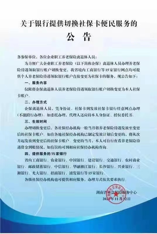 關於銀行提供切換社保卡便民服務的公告