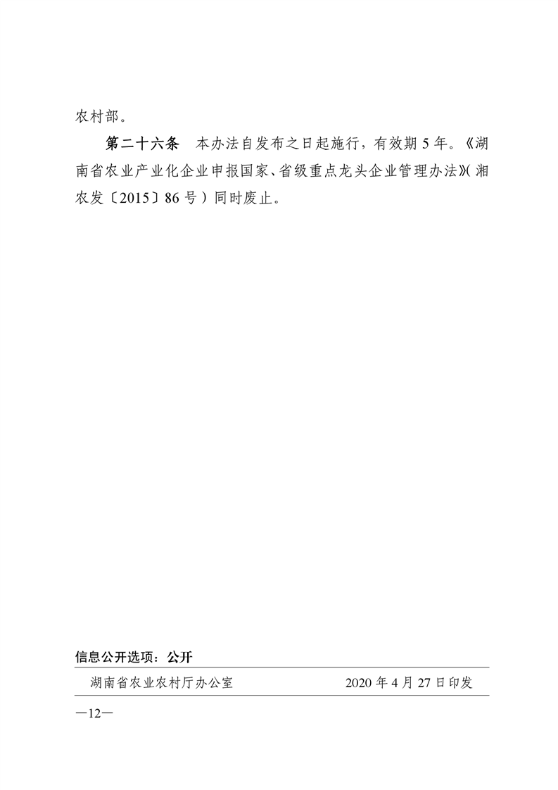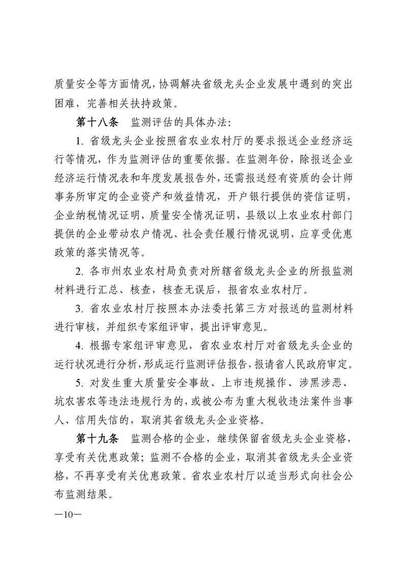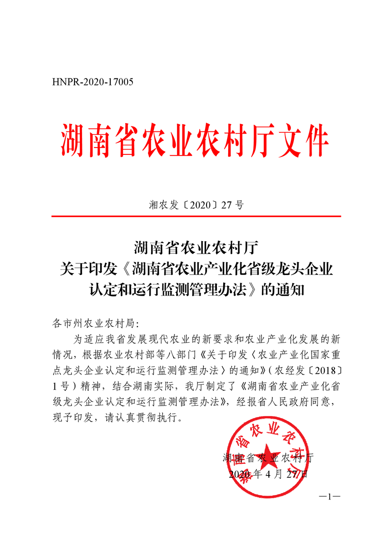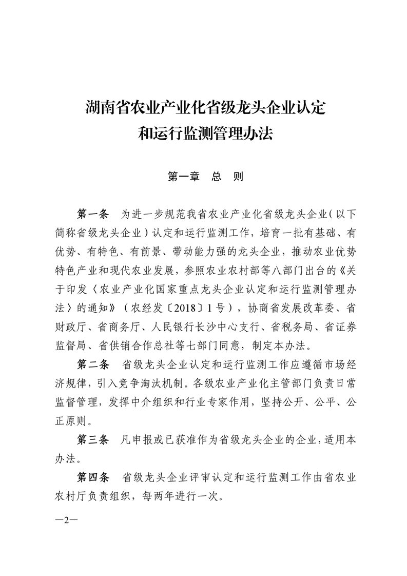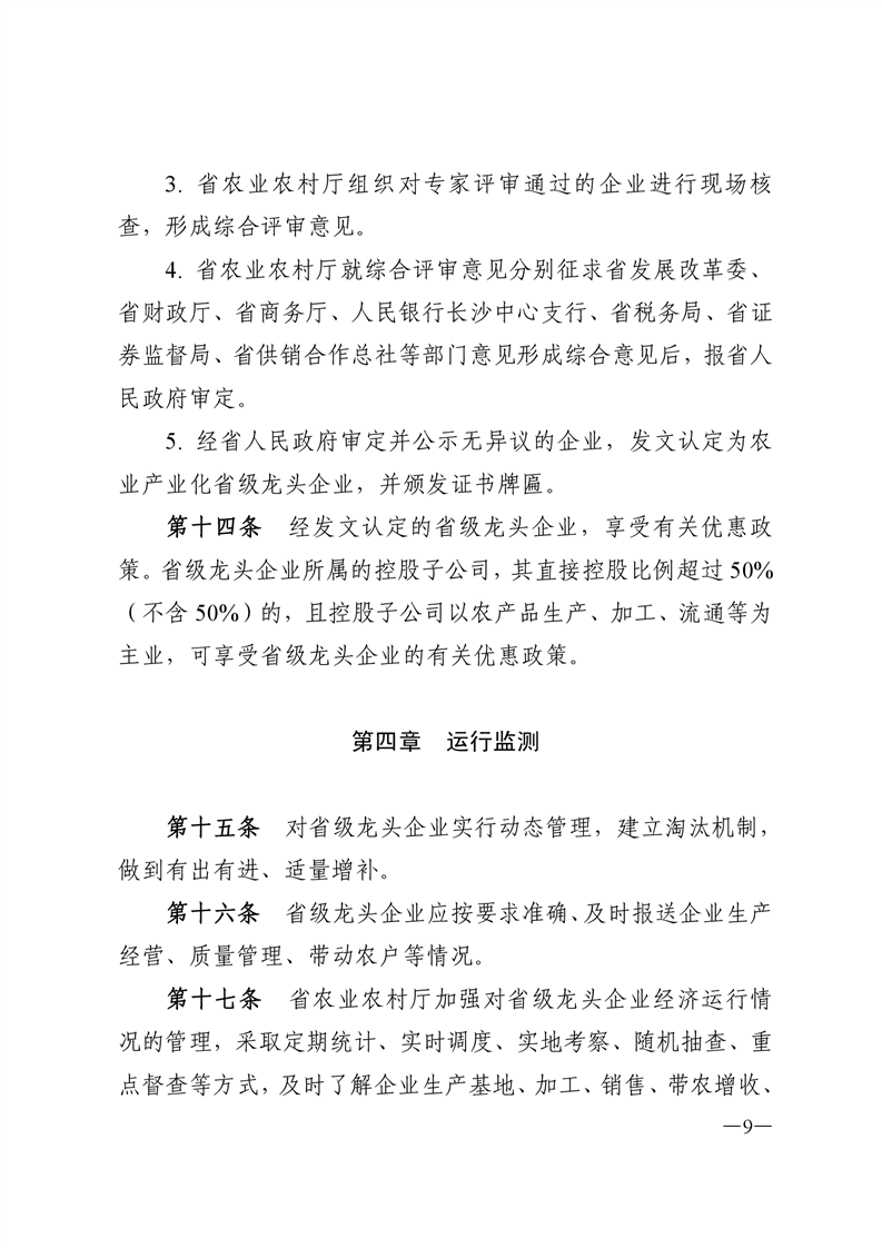 湖南省農業產業化省級龍頭企業認定和運行監測管理辦法