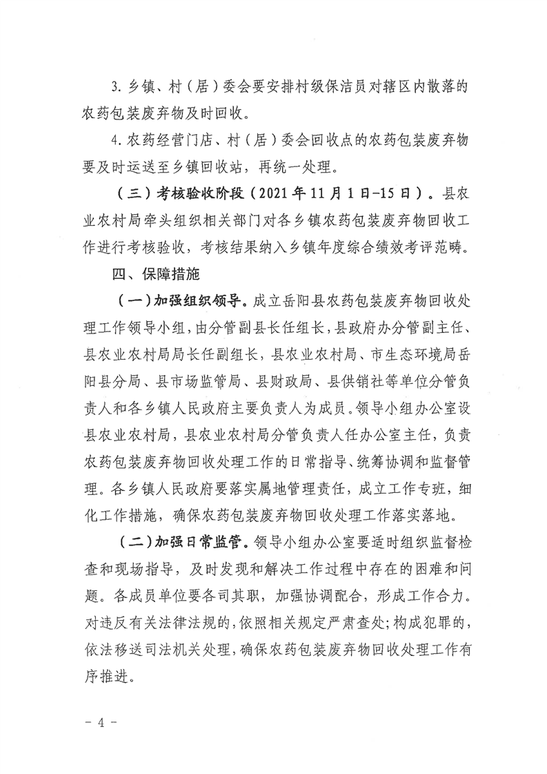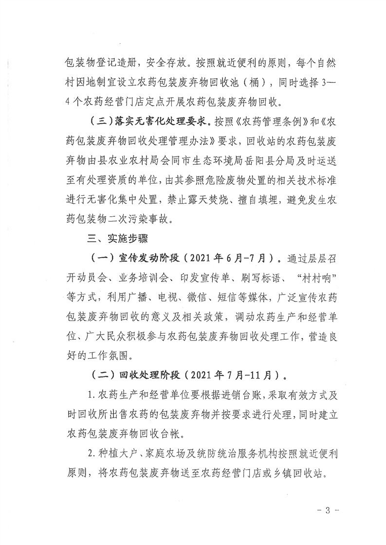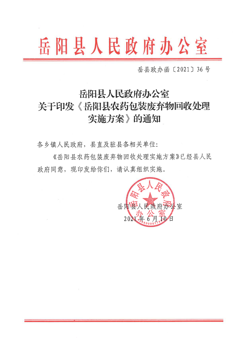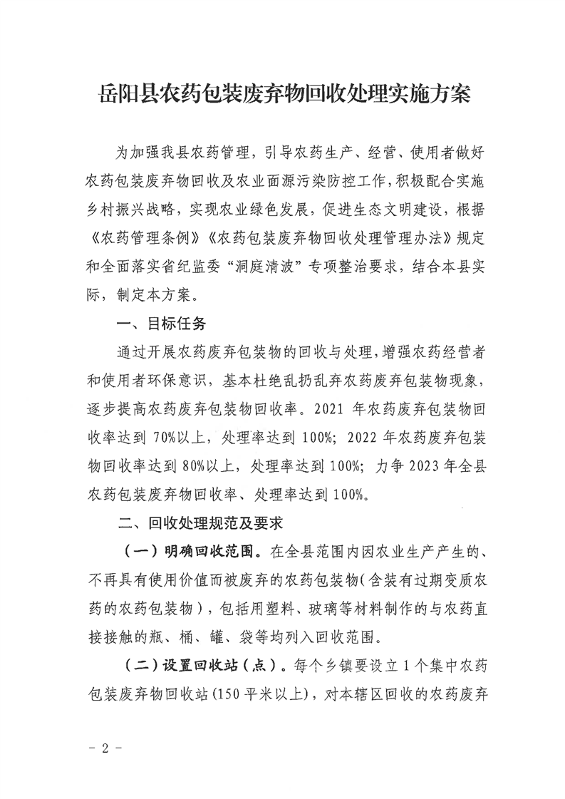 嶽陽縣農藥包裝廢棄物回收處理實施方案