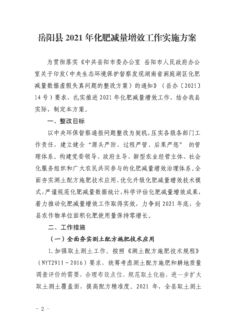嶽陽縣2021年化肥減量增效工作實施方案