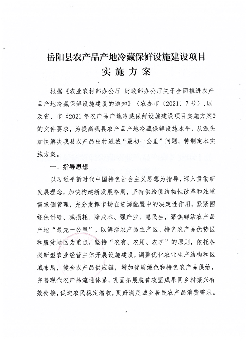 關於印發《農產品產地冷藏保鮮設施建設項目實施方案》的通知
