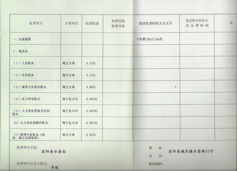 收費許可證
