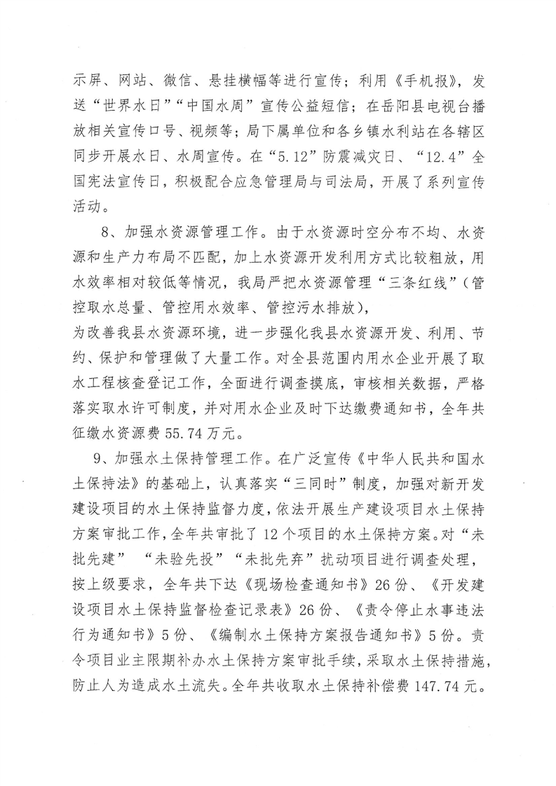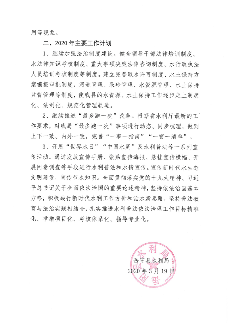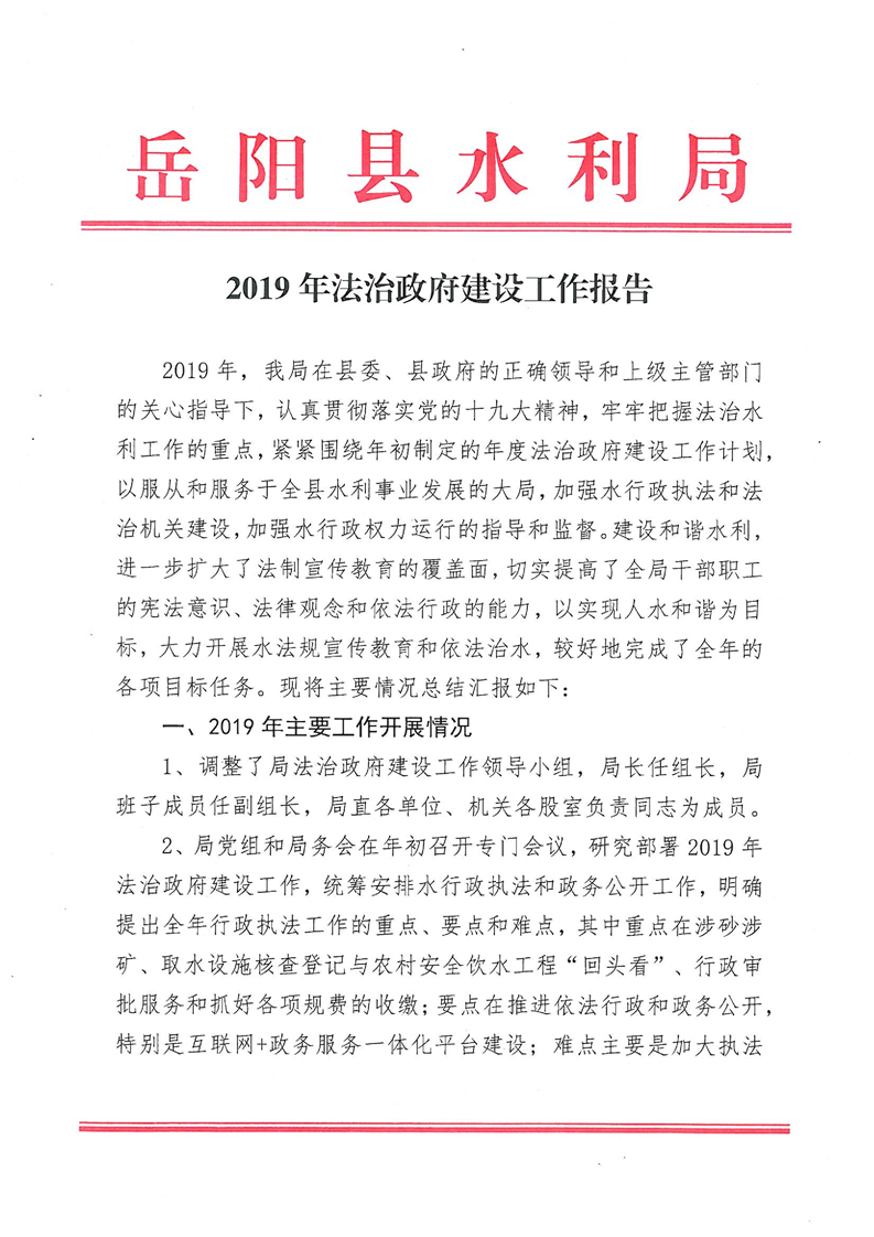 嶽陽縣水利局2019年法治政府建設工作報告