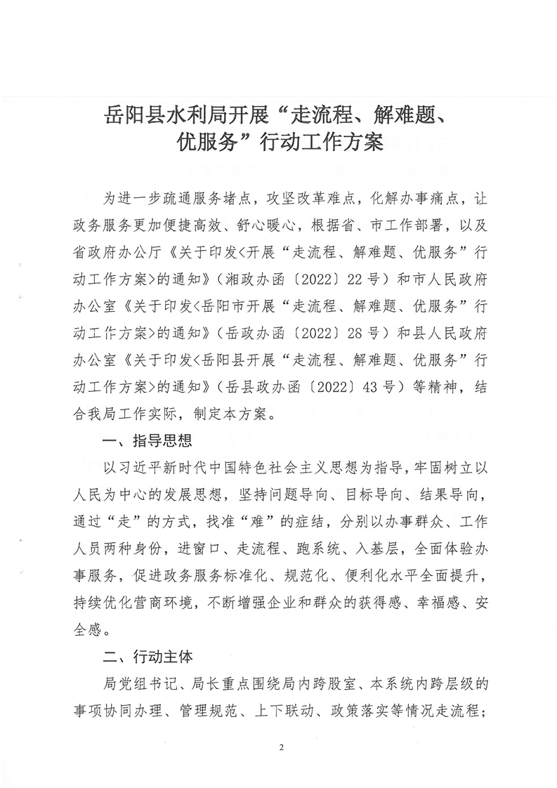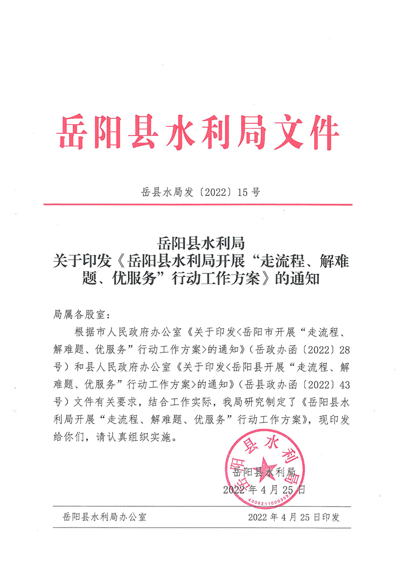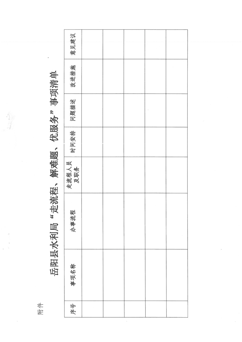 嶽陽縣水利局開展“走流程、解難題、優服務”行動工作方案