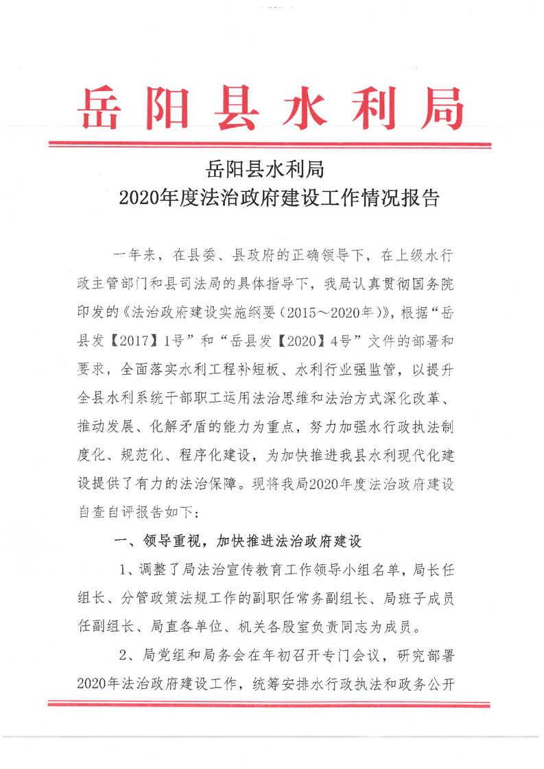 嶽陽縣水利局2020年度法治政府建設工作情況報告