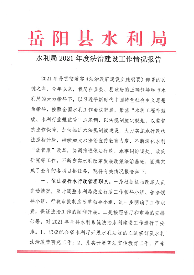 嶽陽縣水利局2021年度法治建設工作情況報告