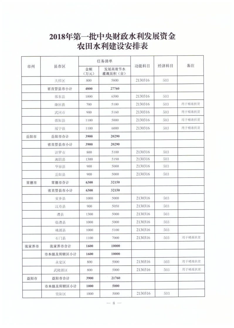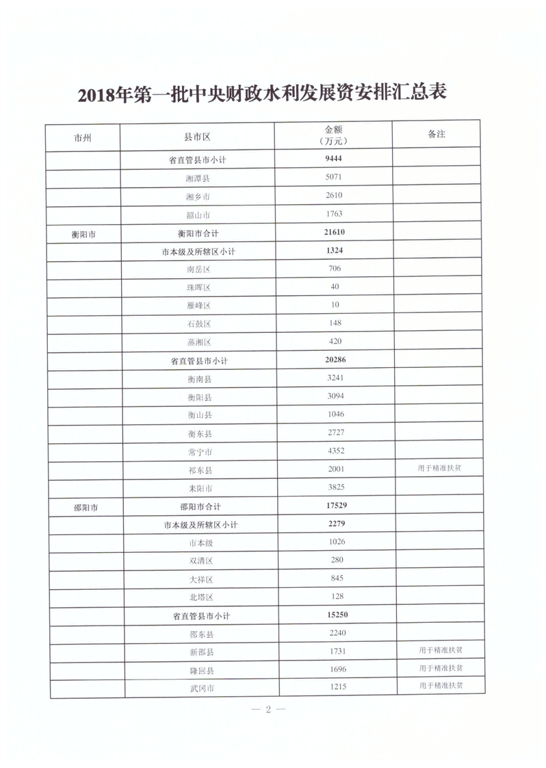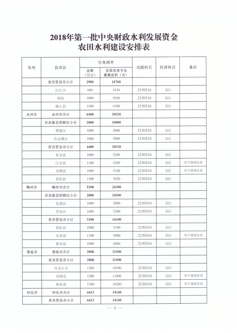 2018年第一批中央水利發展資金計劃