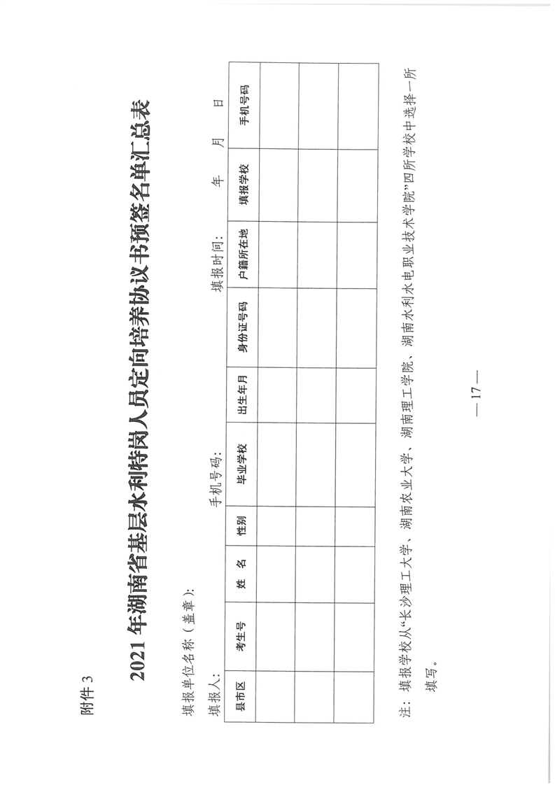 湖南省水利廳關於下達2021年基層水利特崗人員定向培養計劃的通知