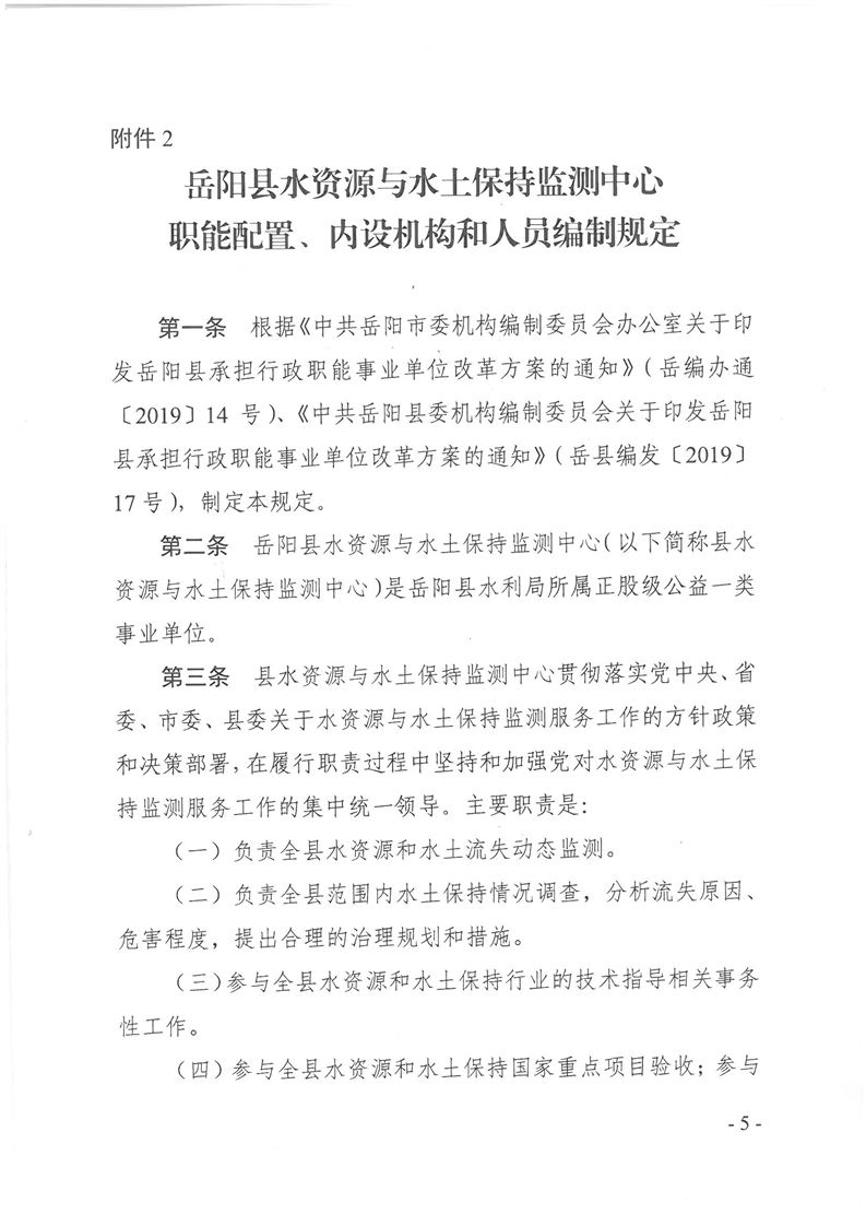 嶽陽縣縣水利經濟服務中心、嶽陽縣水資源與水土保持監測中心、嶽陽縣水利水電質量監督站職能配置、內設機構和人員編製規定