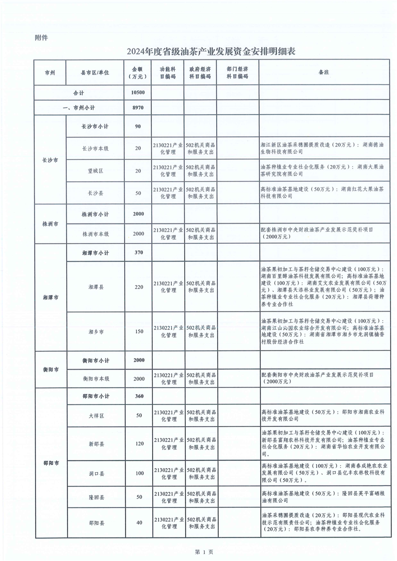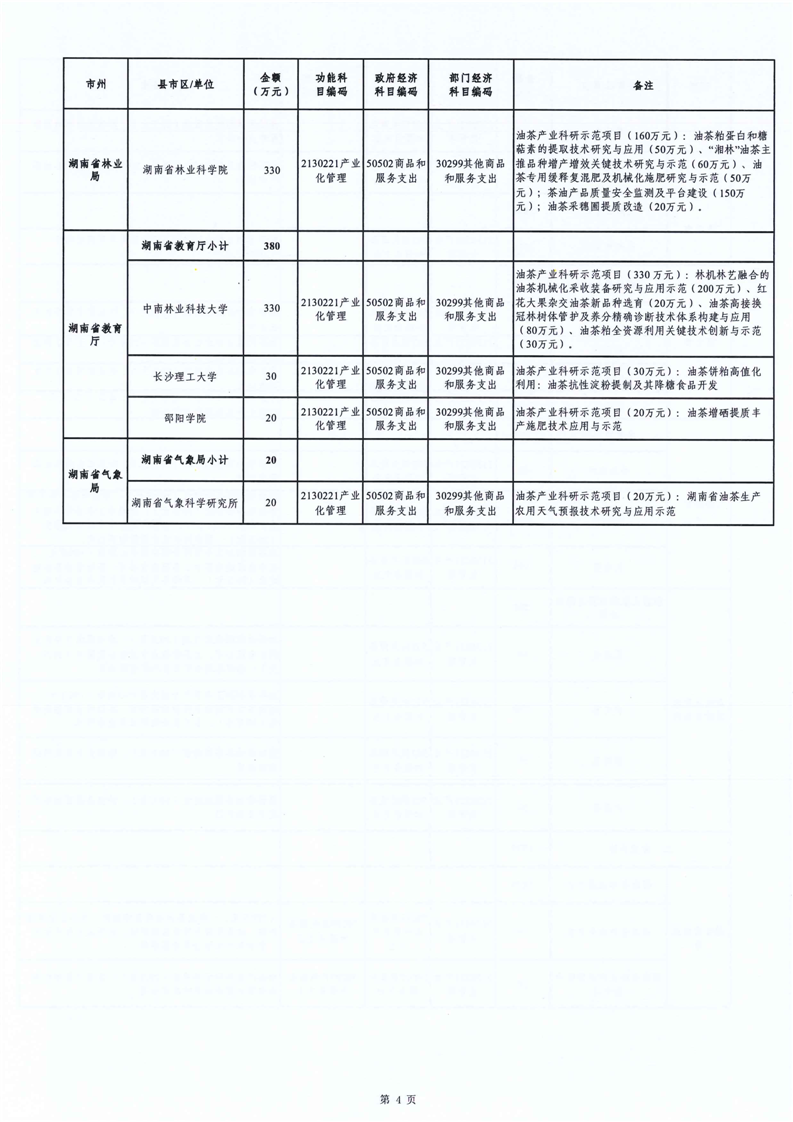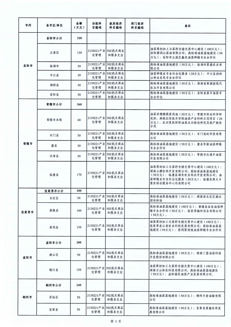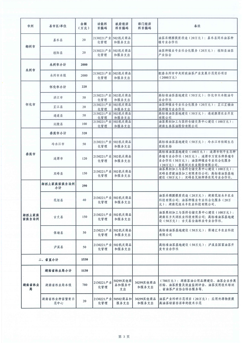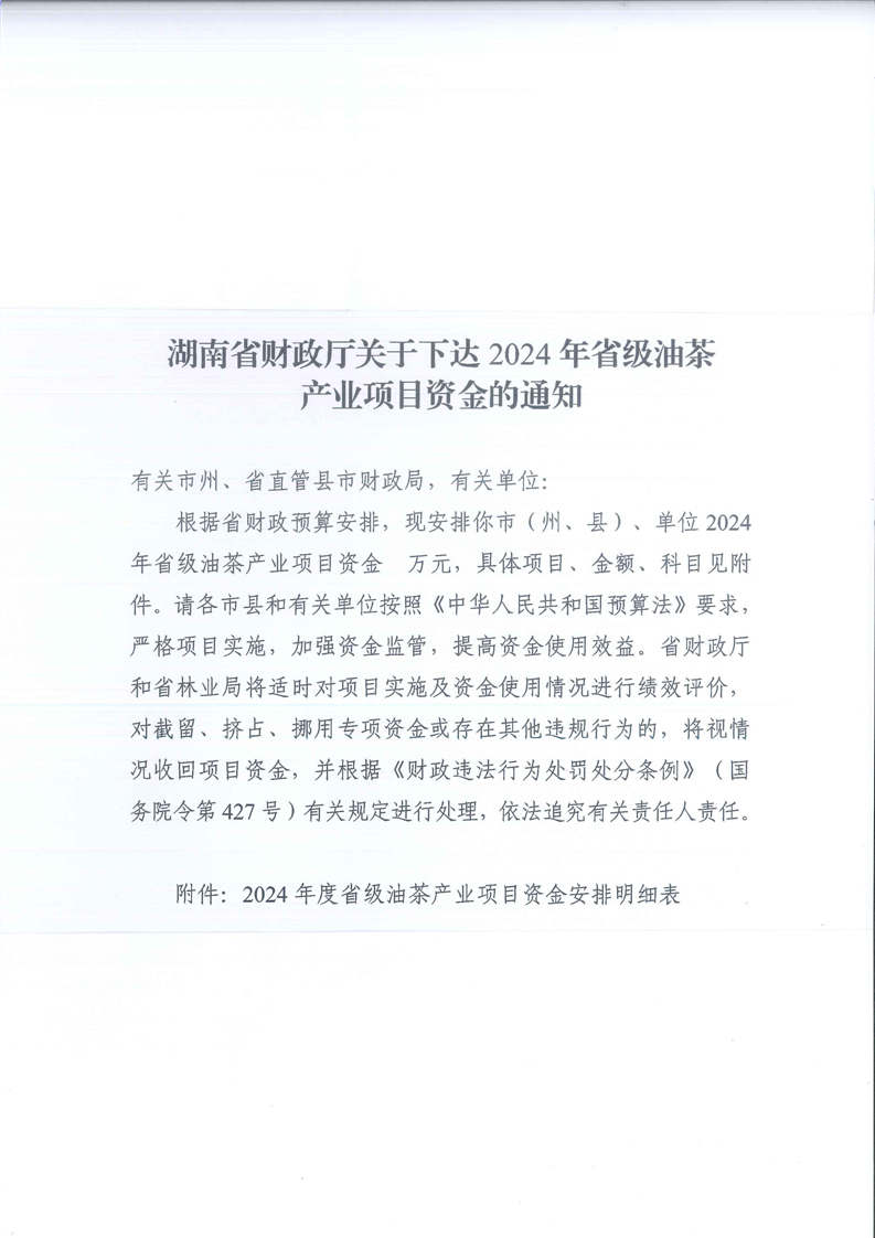 湖南省財政廳關於下達省級油茶產業項目資金的通知
