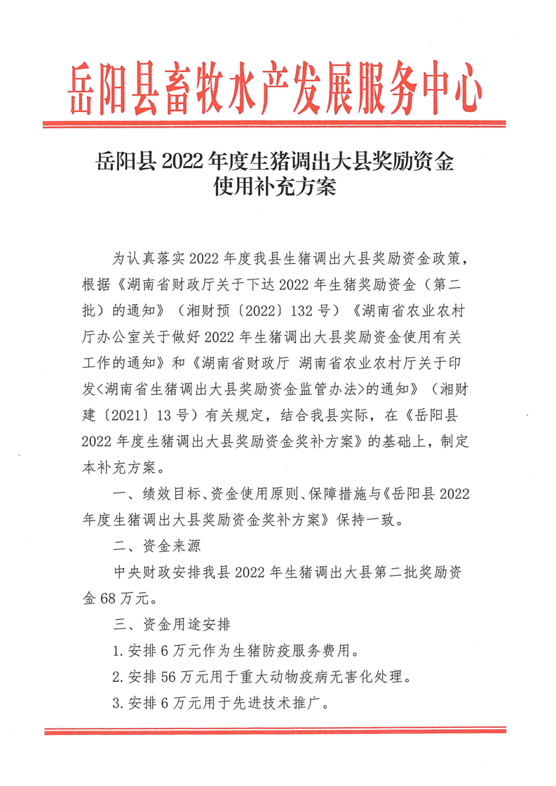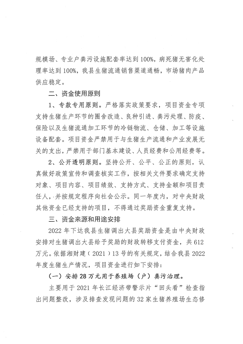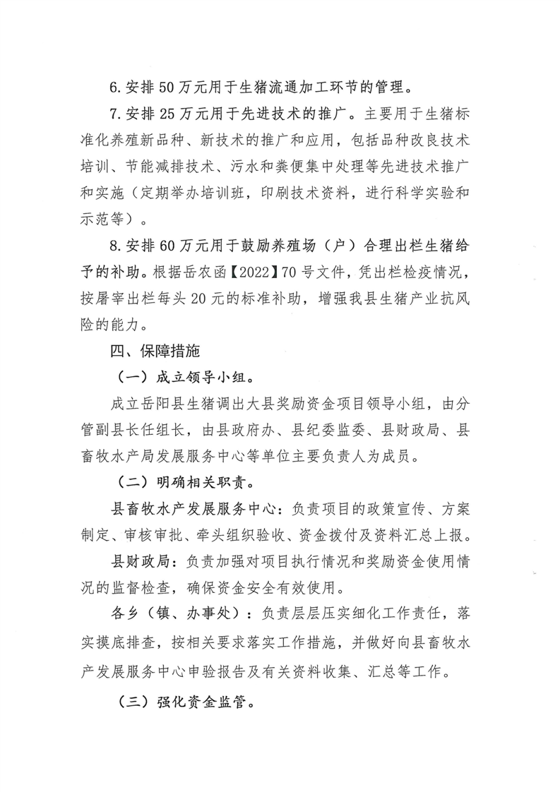 嶽陽縣2022年度生豬調出大縣獎勵資金獎補方案