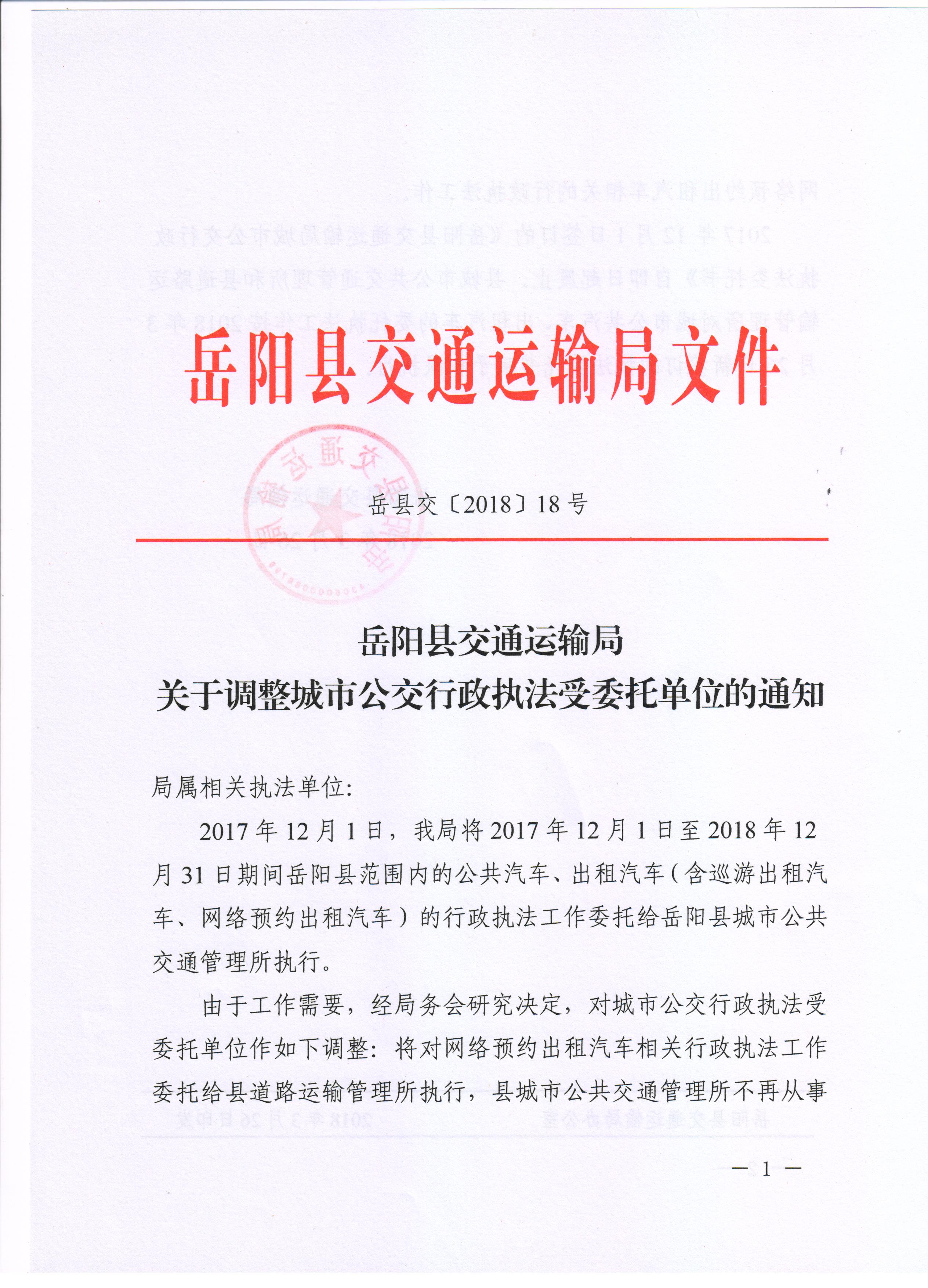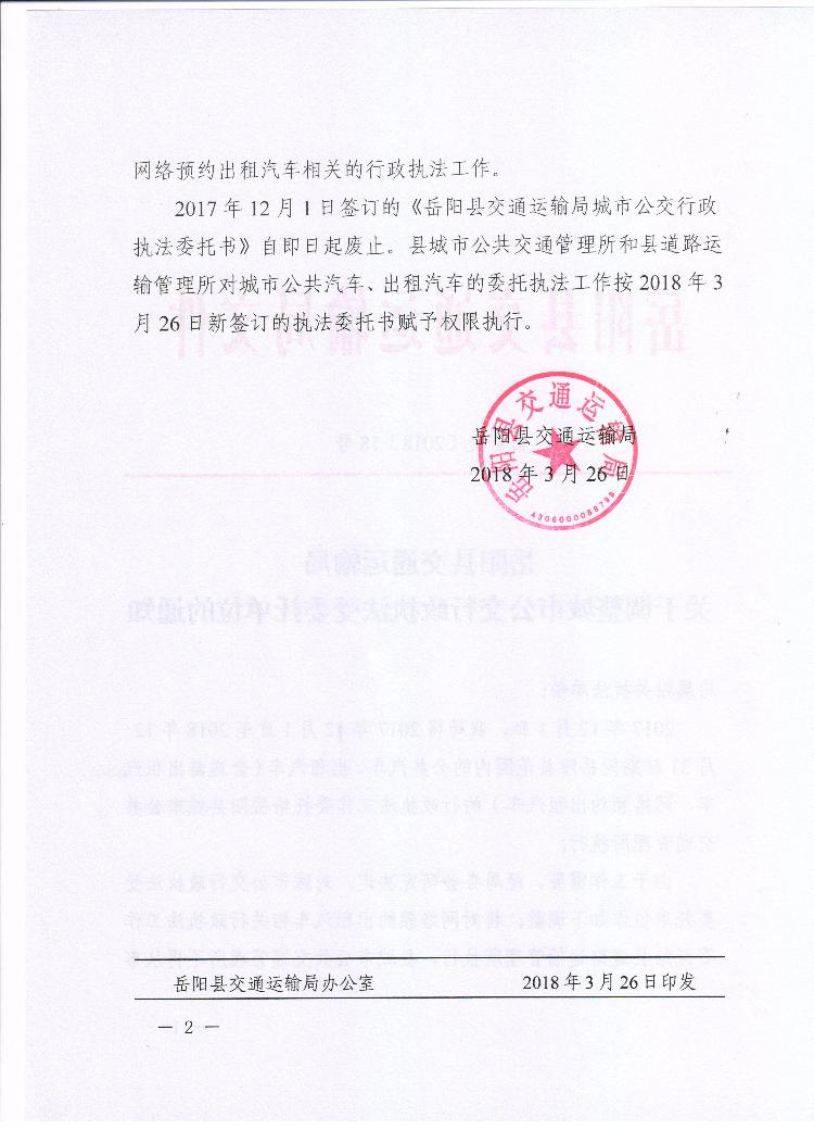 嶽陽縣交通運輸局關於調整公交行政執法受委托單位的通知