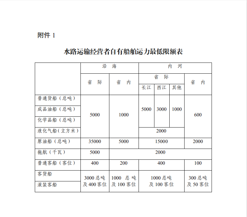 (三)有符合本規定要求的船舶,且自有船舶運力應當符合附件1的要求。