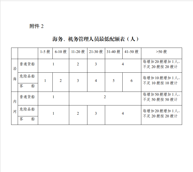 (一)海務、機務管理人員數量滿足附件2的要求;