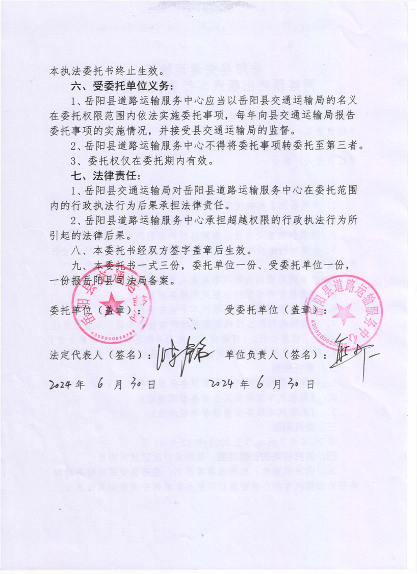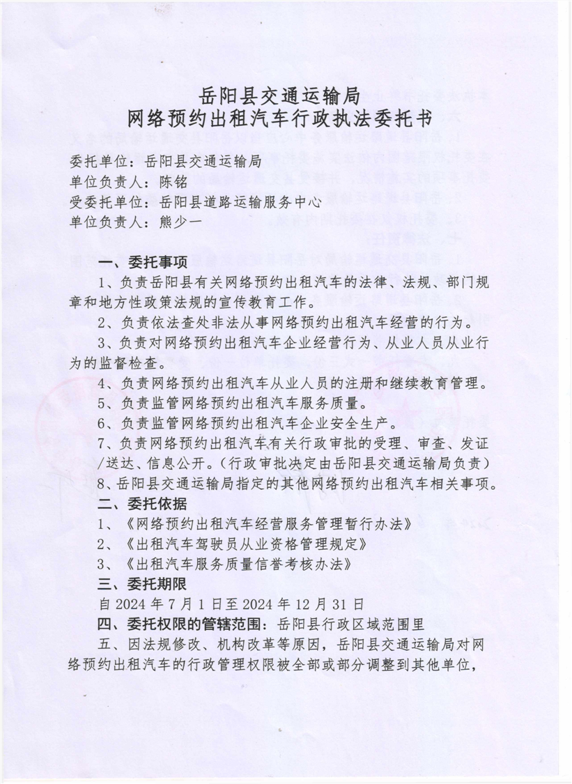 嶽陽縣交通運輸局網絡預約出租車行政執法委托書(20240701-20241231)