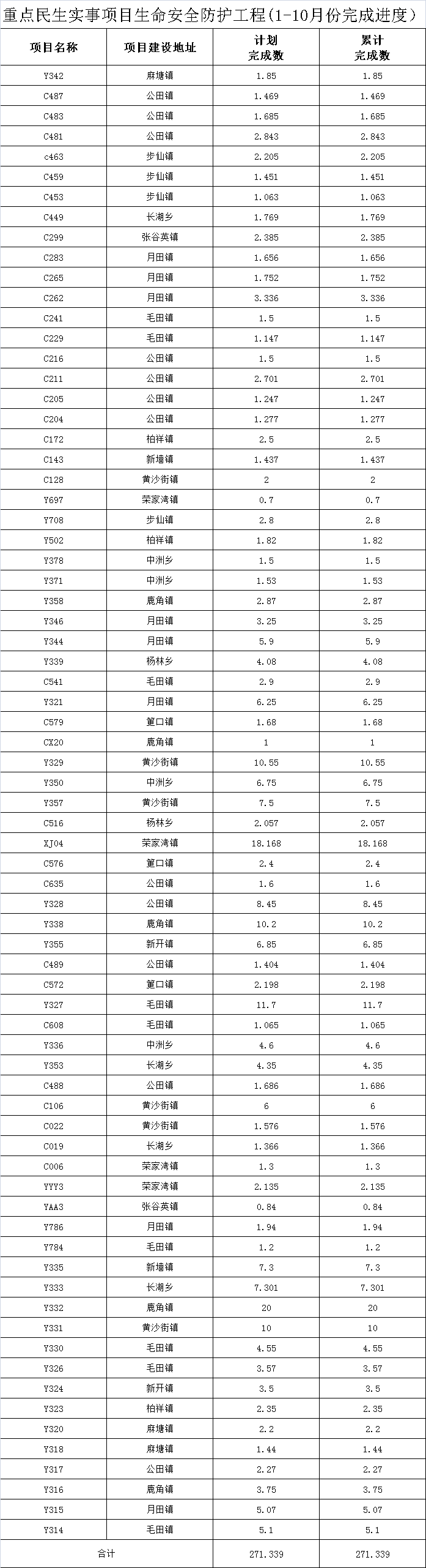 嶽陽縣交通運輸局重點民生實事項目生命安全防護工程(1-10月份完成進度)