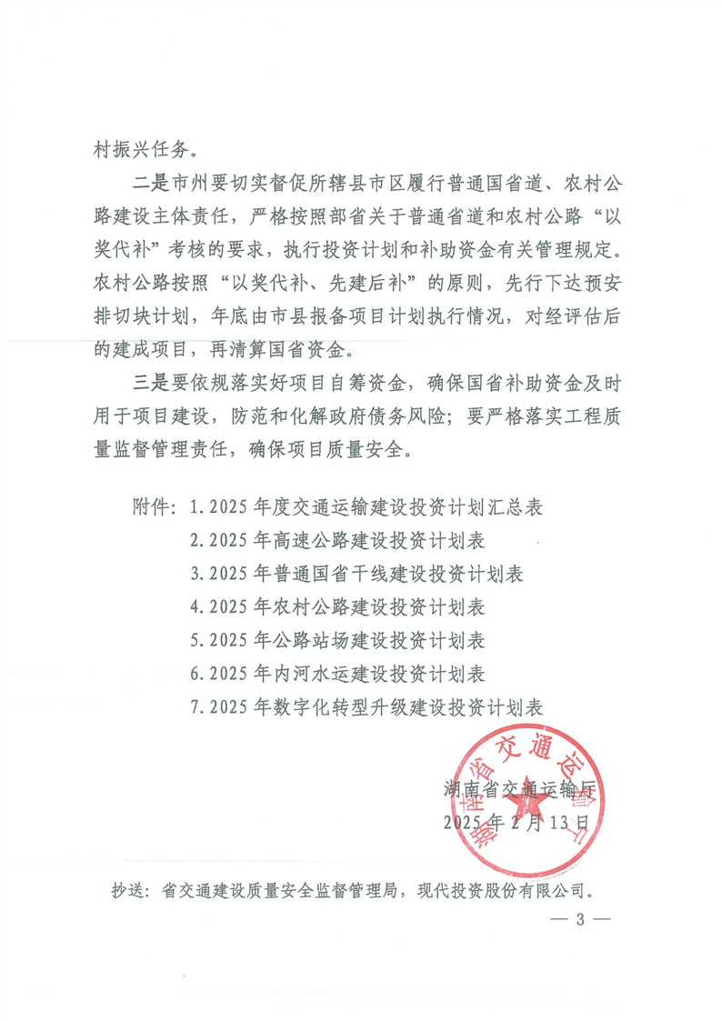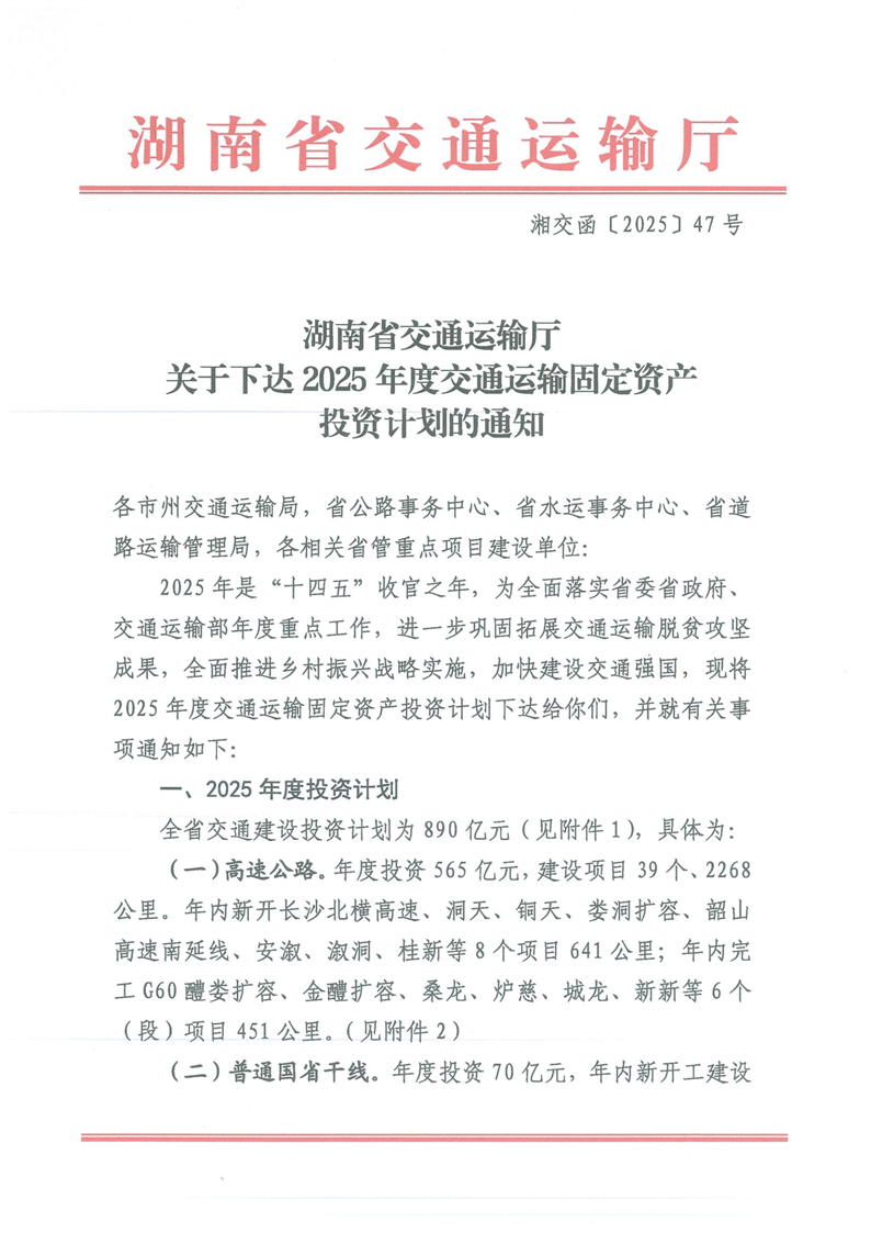 關於下達2025年交通運輸固定資產投資計劃的通知