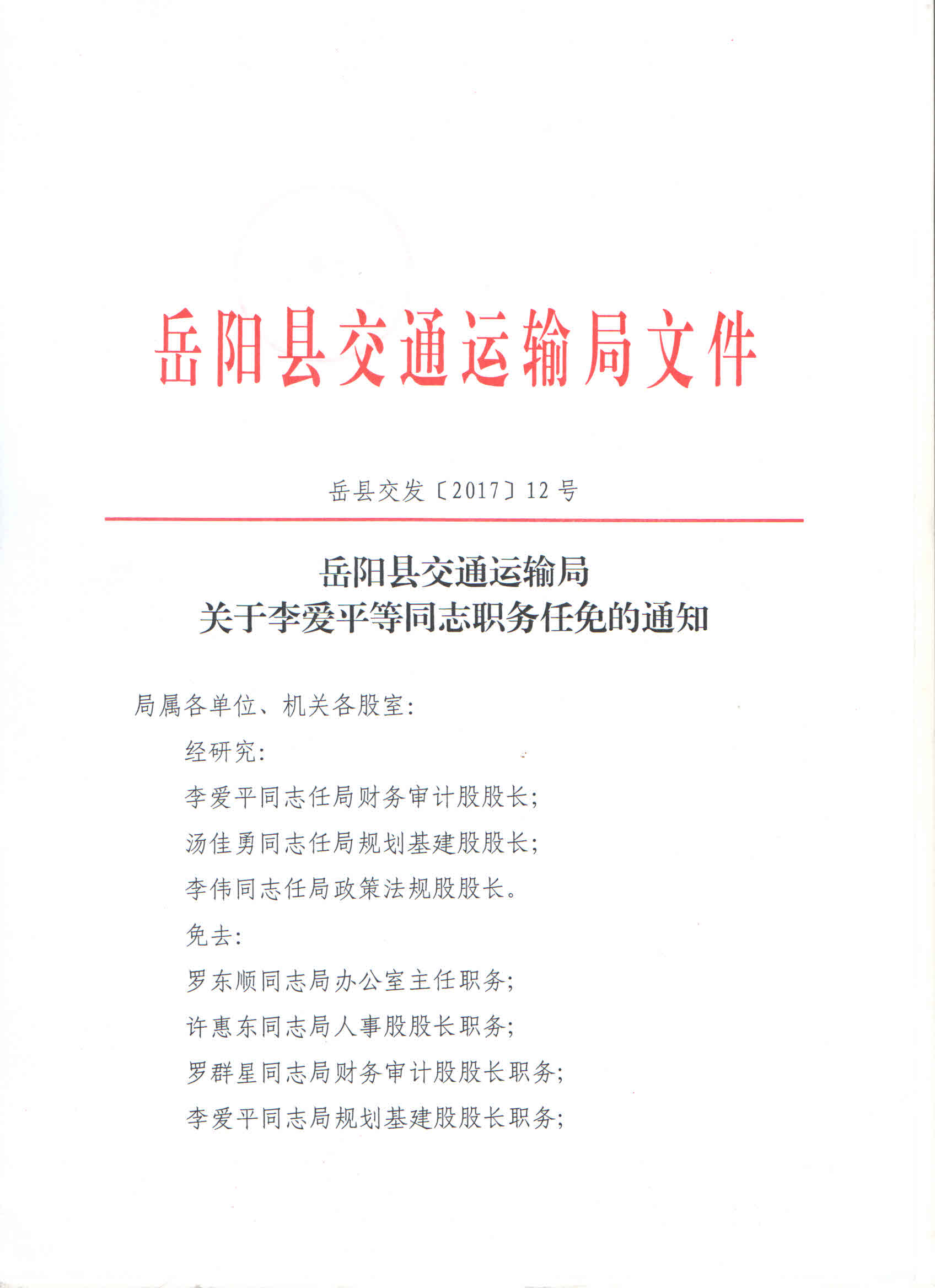關於李愛平等同誌職務任免的通知