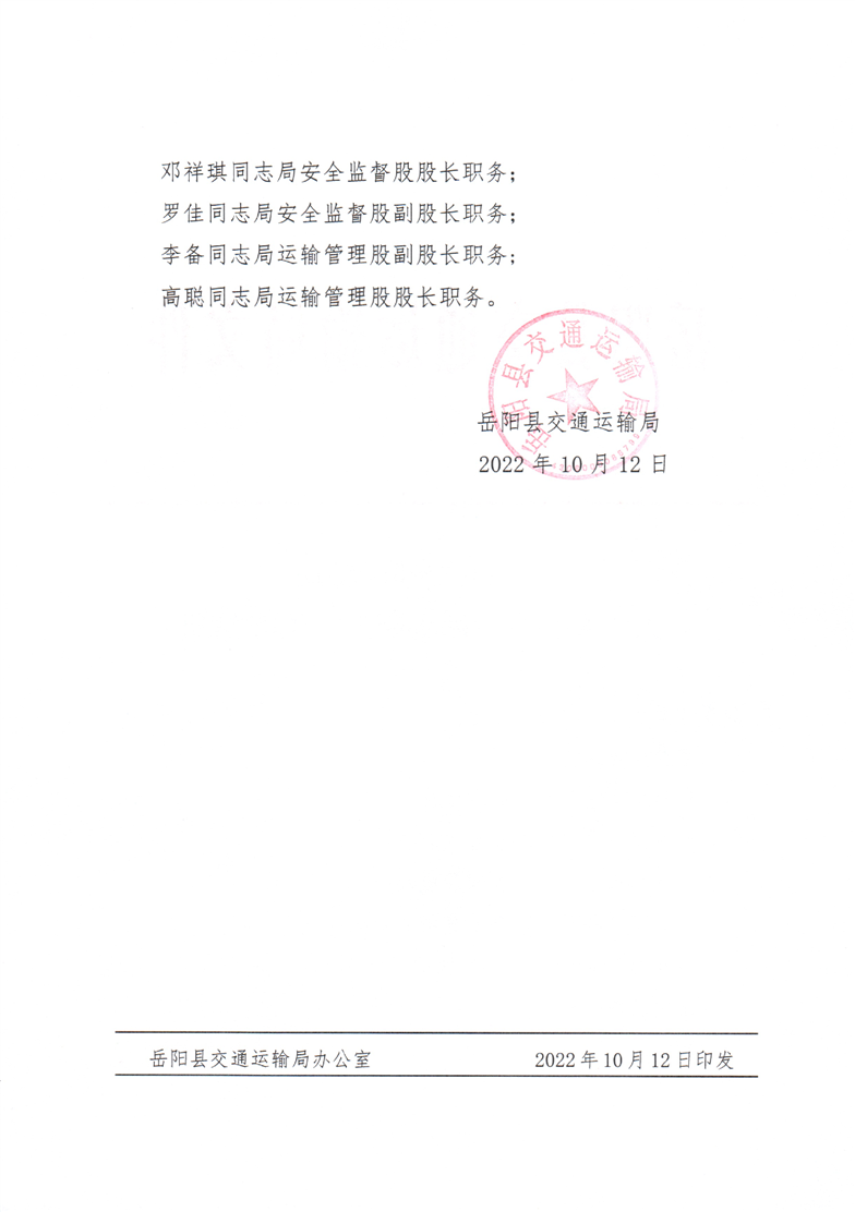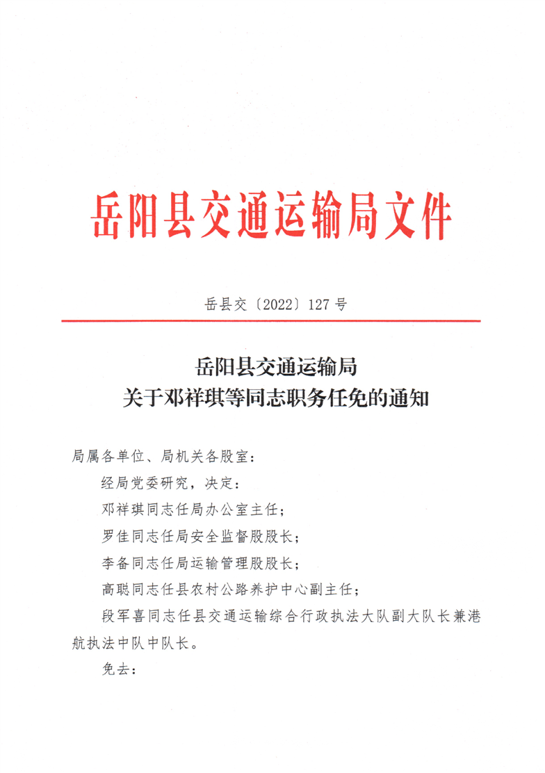 嶽陽縣交通運輸局關於鄧祥琪等同誌職務任免的通知
