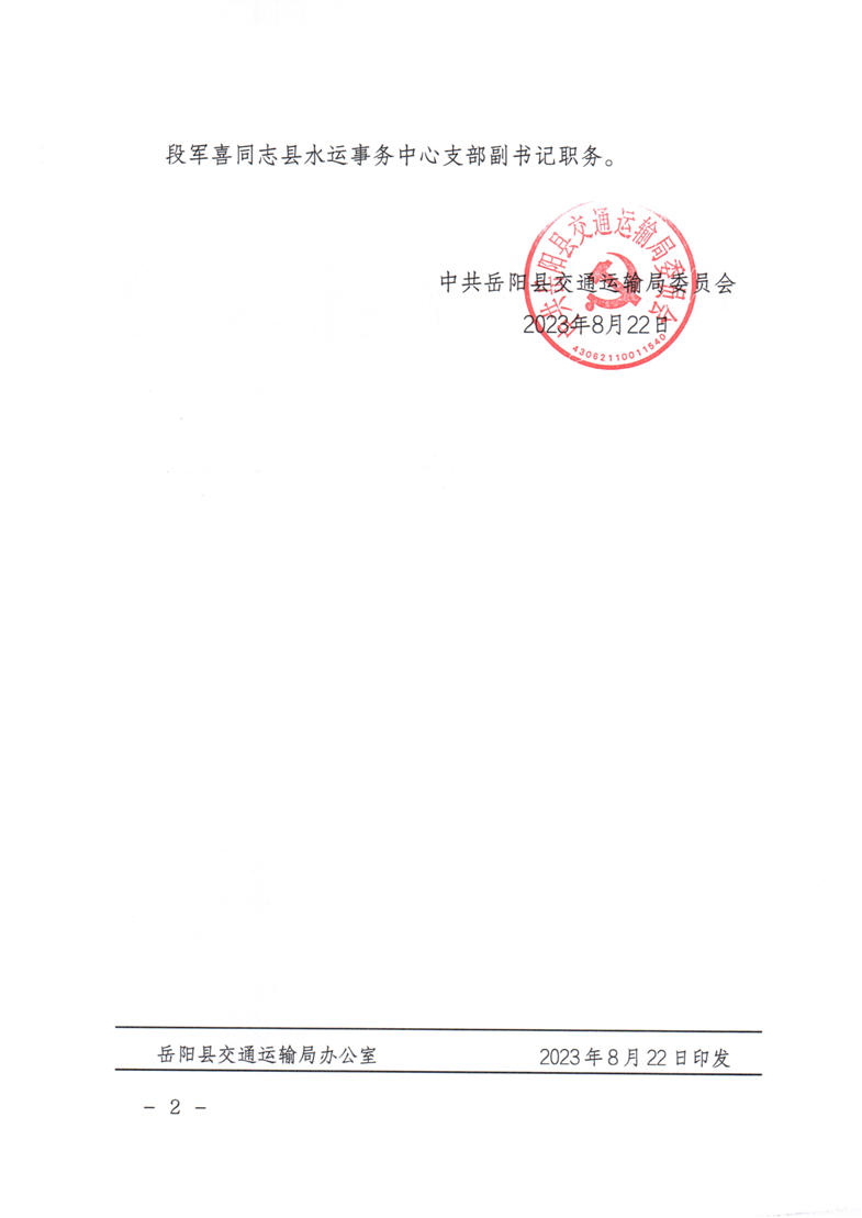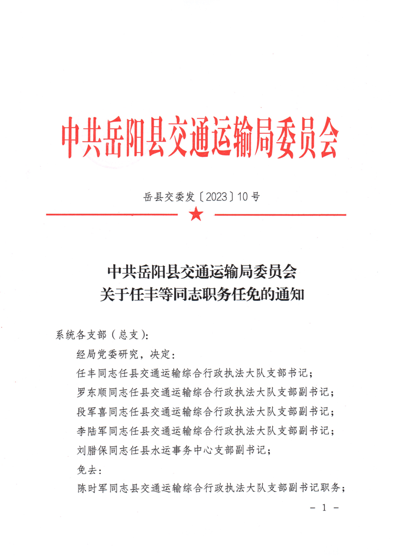 關於任豐等同誌職務任免的通知 嶽縣交委發〔2023〕10號