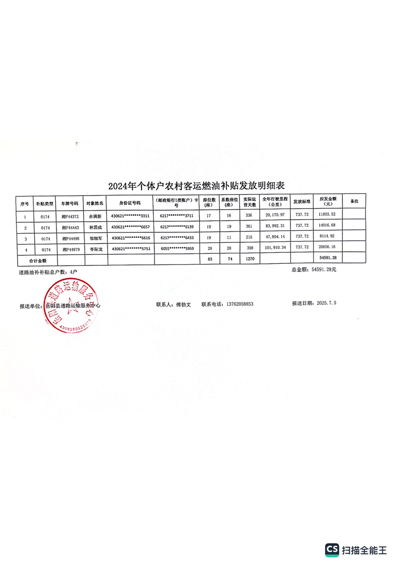 2025年發放2024年度嶽陽縣城鄉道路客運油補