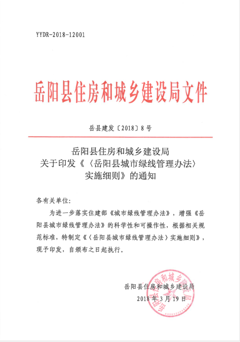《嶽陽縣城市綠線管理辦法》實施細則