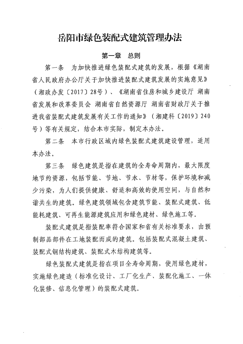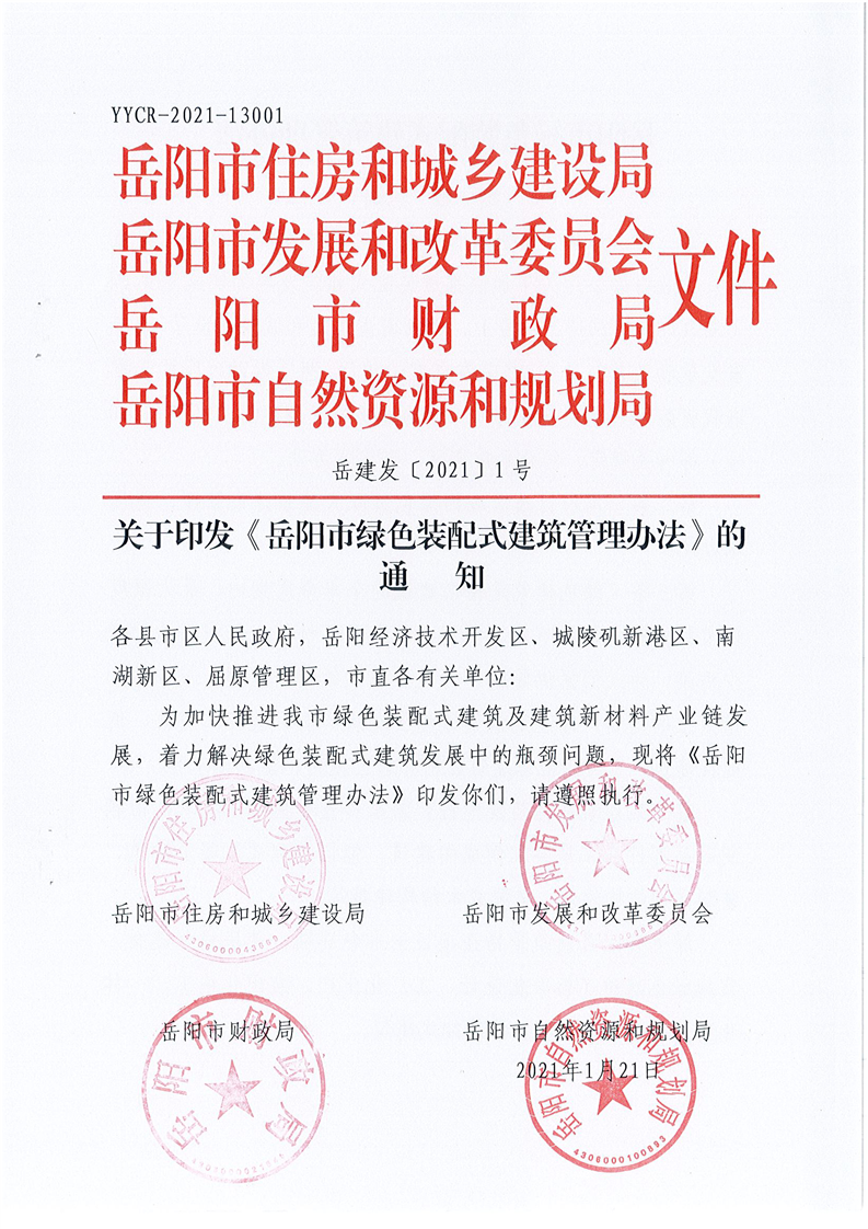 關於印發《嶽陽市綠色裝配式建築管理辦法》的通知