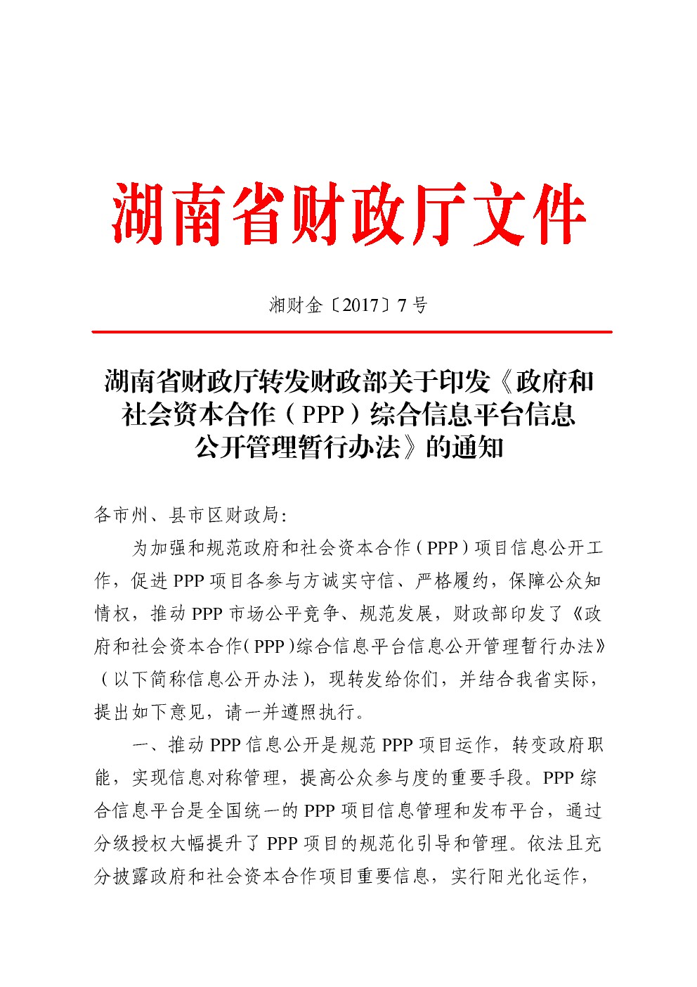 關於印發《政府和社會資本合作(PPP)綜合信息平台信息公開管理暫行辦法》的通知