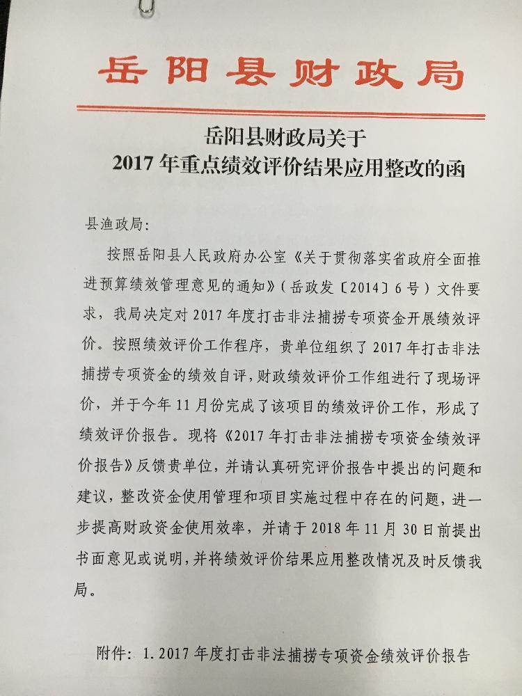 關於2017年重點績效評價結果應用整改的函(打擊非法捕撈)