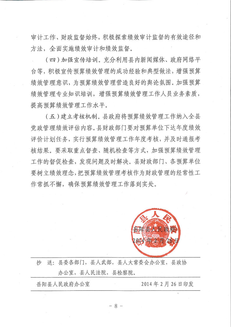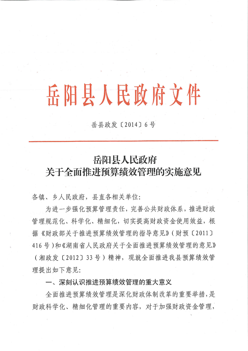 關於全麵推進預算績效管理管理的實施意見