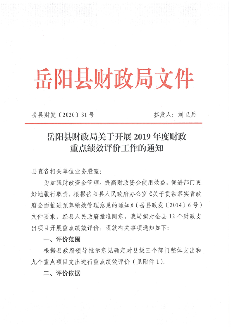關於開展2019年度財政重點績效評價工作的通知