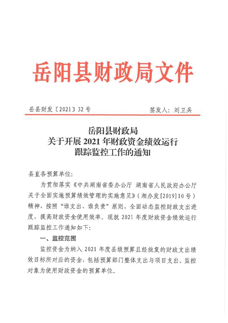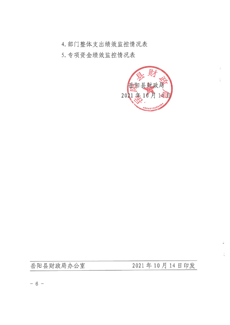 嶽陽縣財政局2021年財政資金績效監控工作的通知