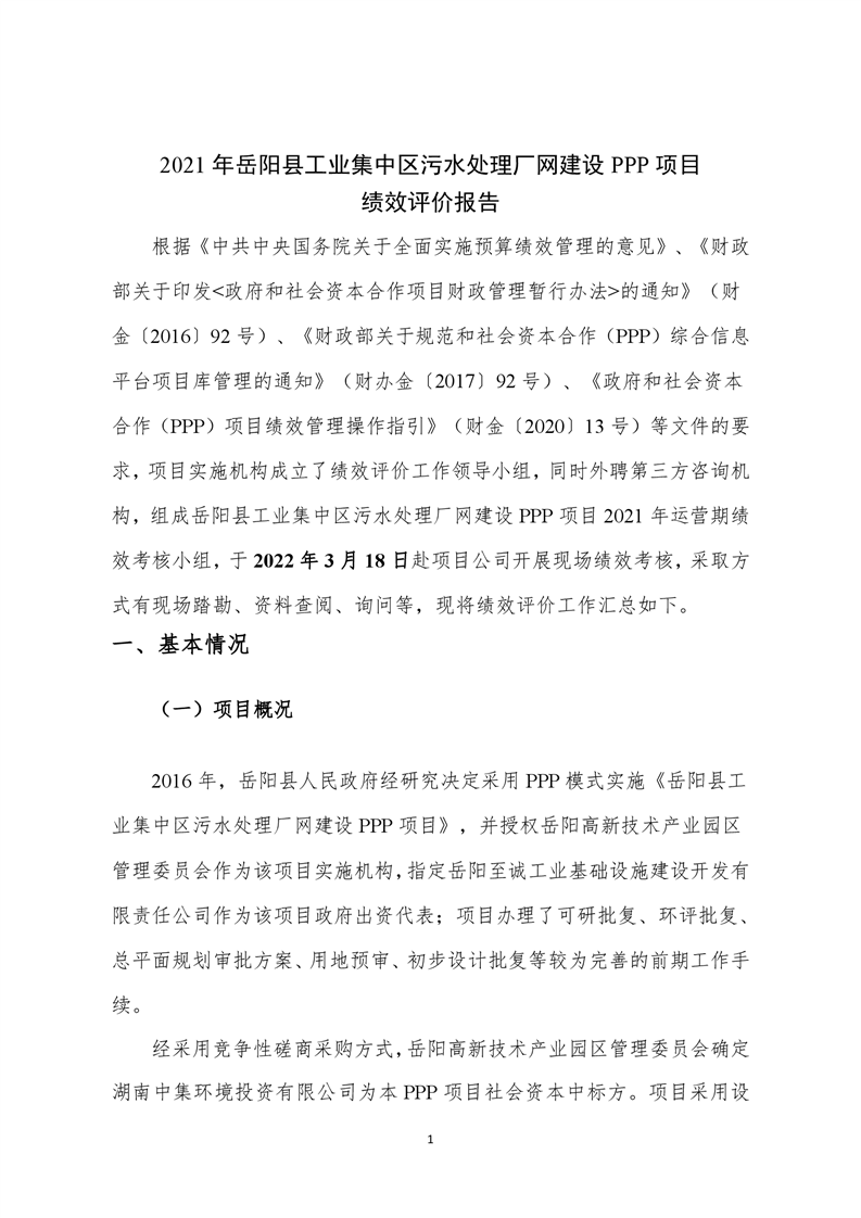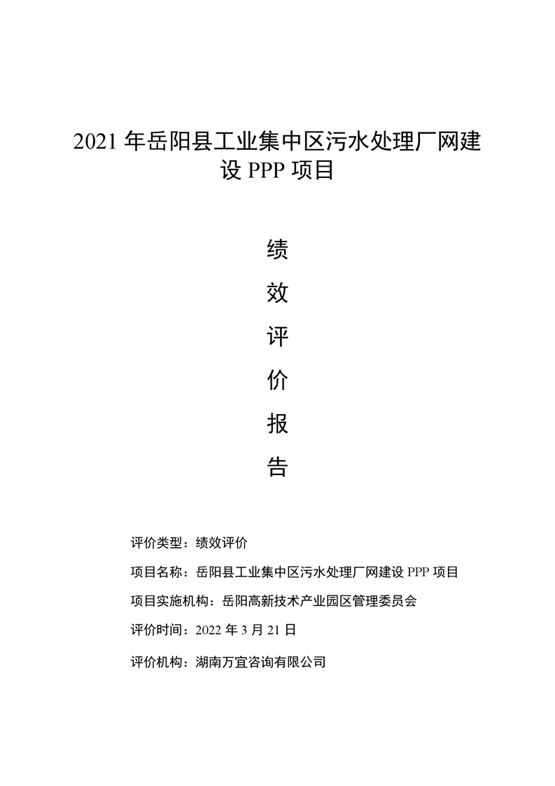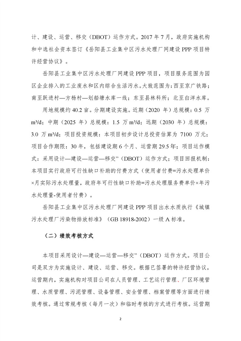 2021年嶽陽縣工業集中區汙水處理廠網建設PPP項目