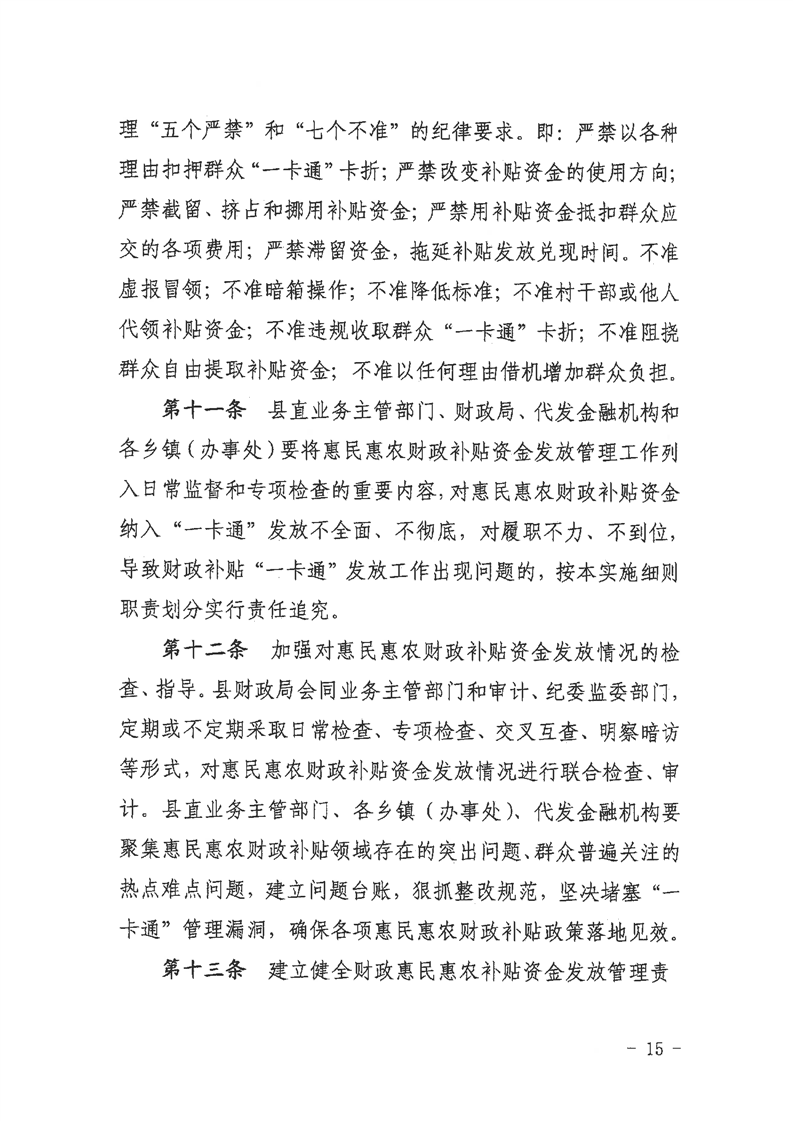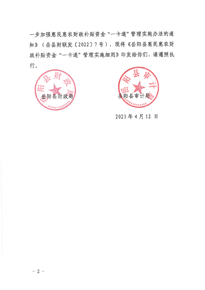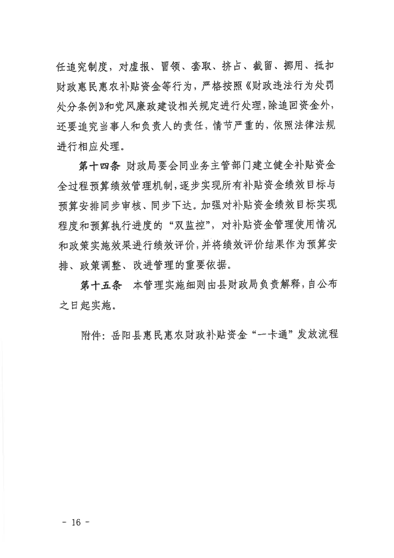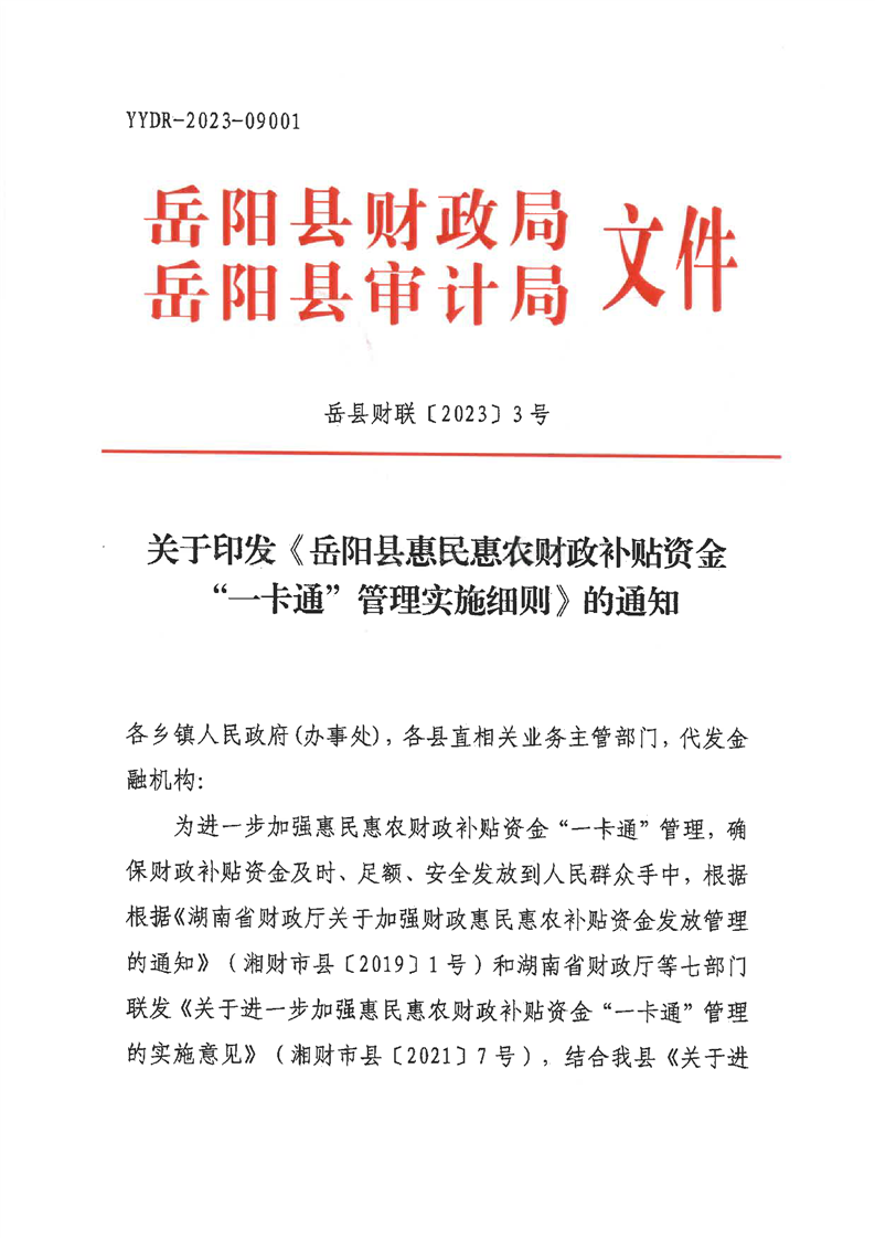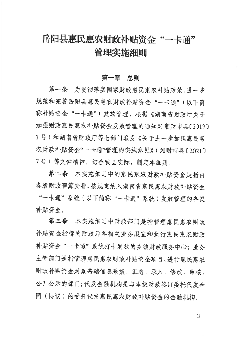 嶽陽縣惠民惠農財政補貼資金“一卡通”發放管理實施細則