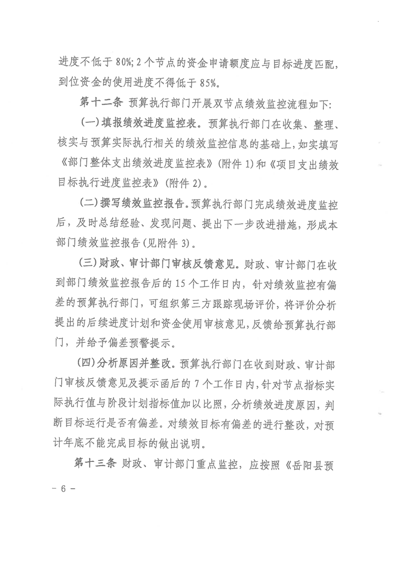 嶽陽縣財政局嶽陽縣審計局關於印發《嶽陽縣預算績效監控管理辦法》的通知