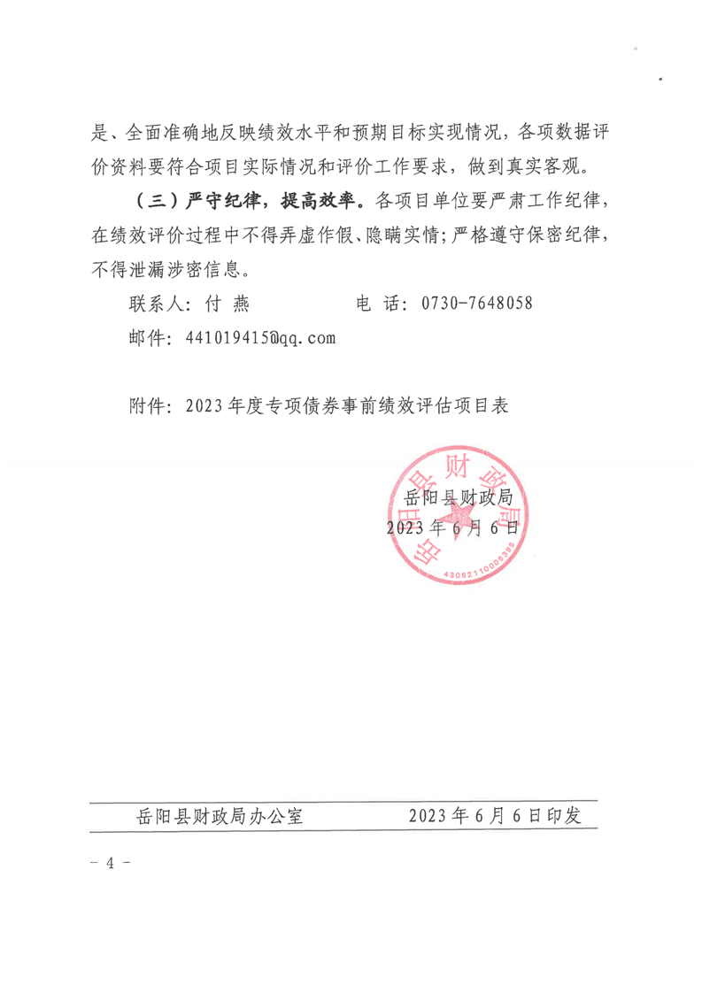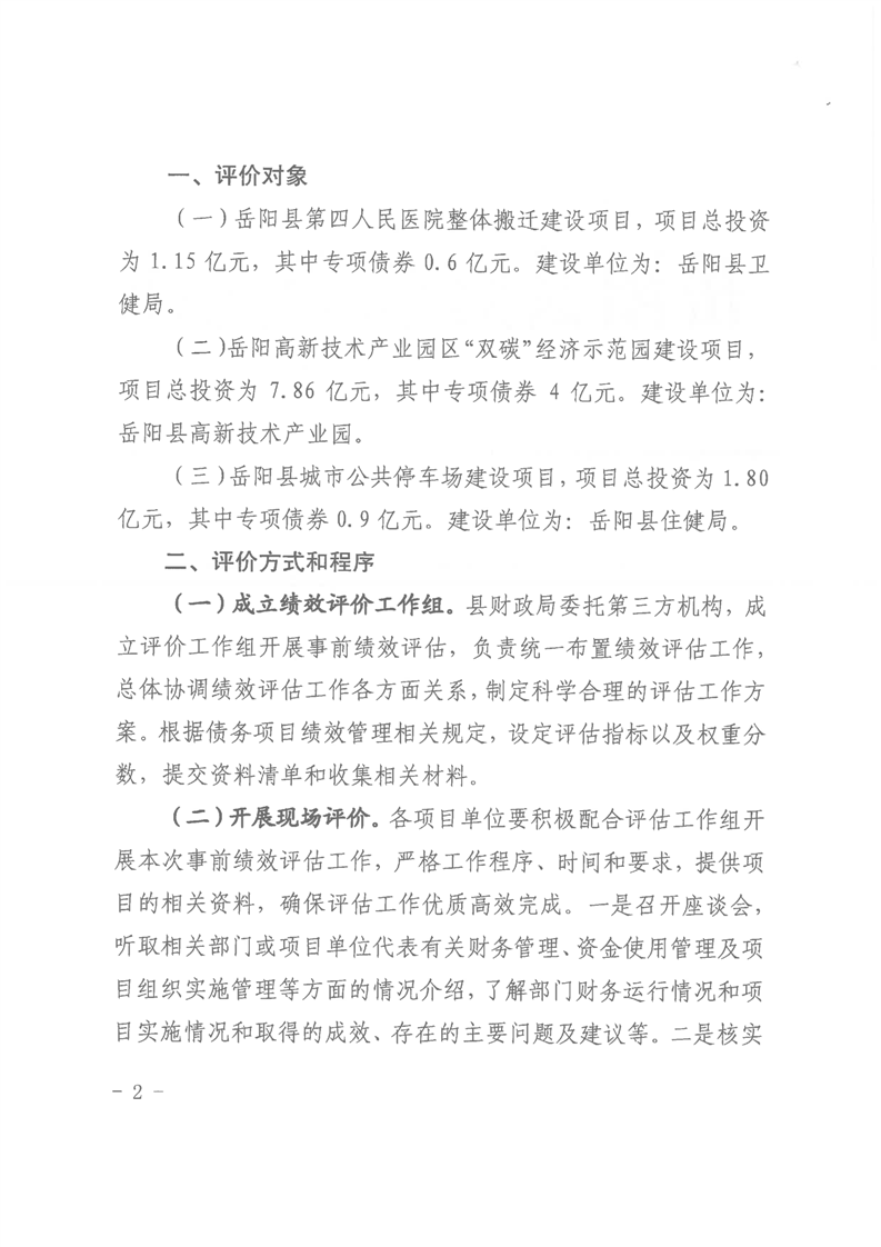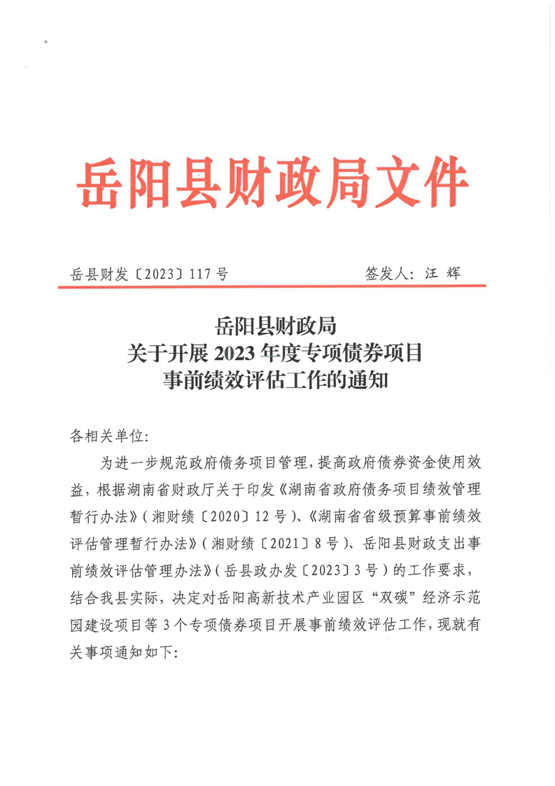 嶽陽縣財政局關於開展2023年度專項債券項目事前績效評估工作的通知