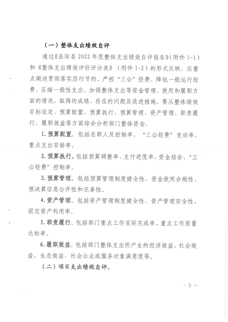 嶽陽縣財政局關於開展2022年財政支出績效自評工作的通知