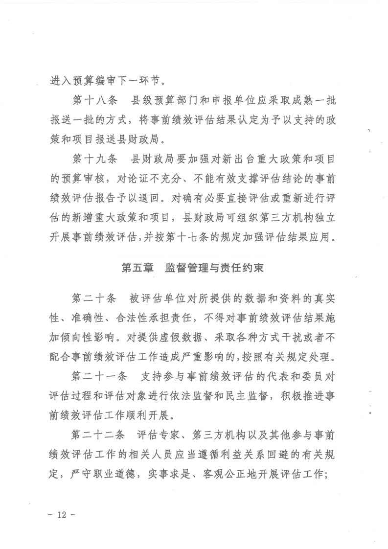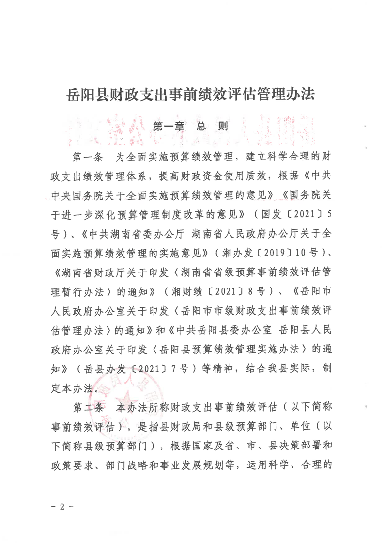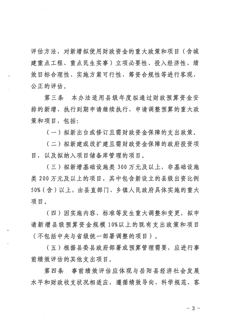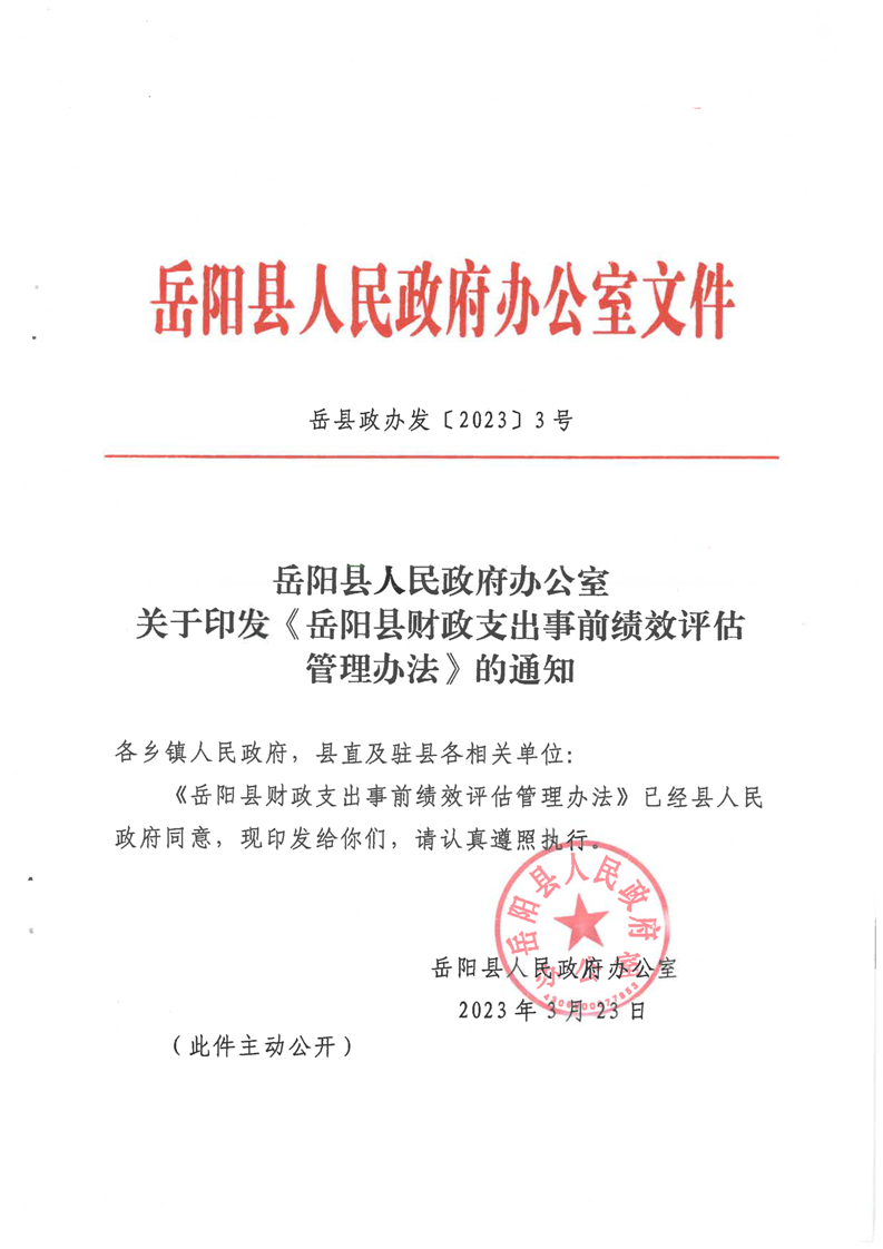 嶽陽縣人民政府辦公室關於印發《嶽陽縣財政支出事前績效評估管理辦法》的通知