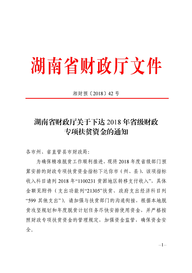 2018年省級財政專項扶貧資金的通知