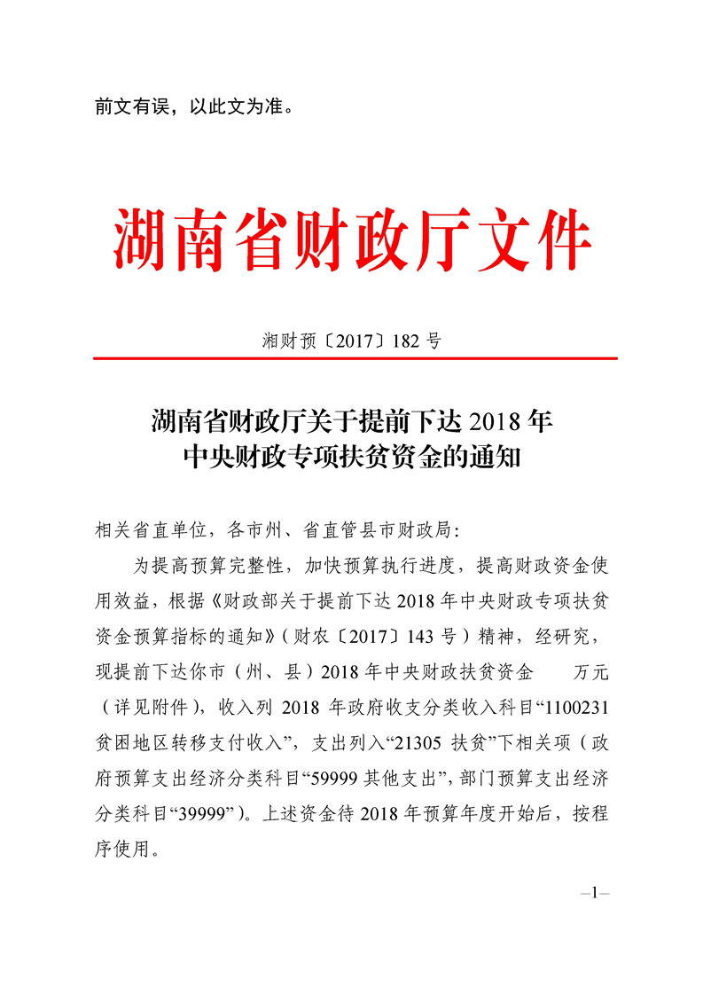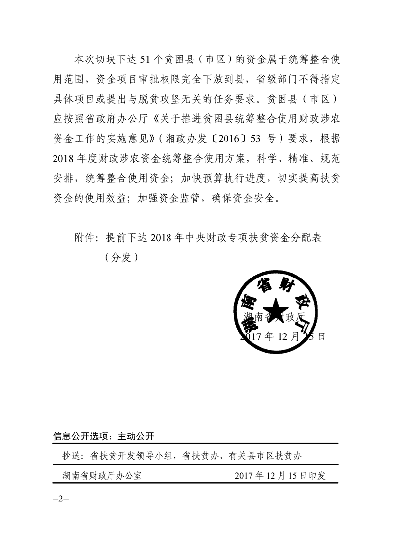 2018年中央財政專項扶貧資金分配表(嶽陽縣)