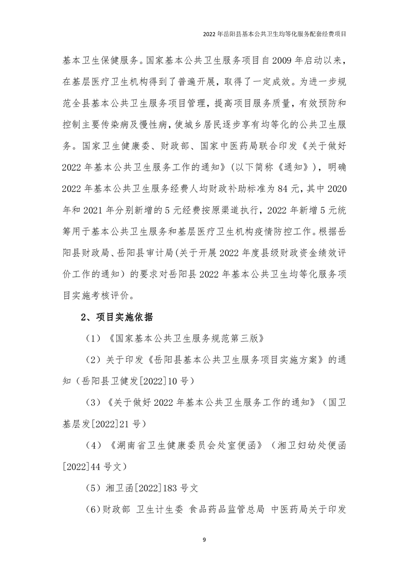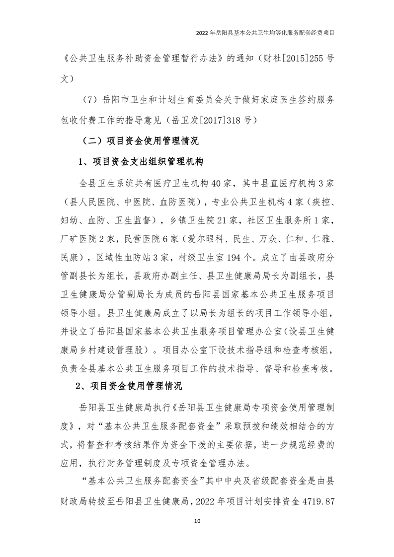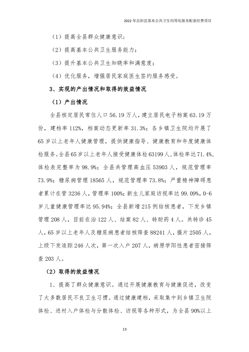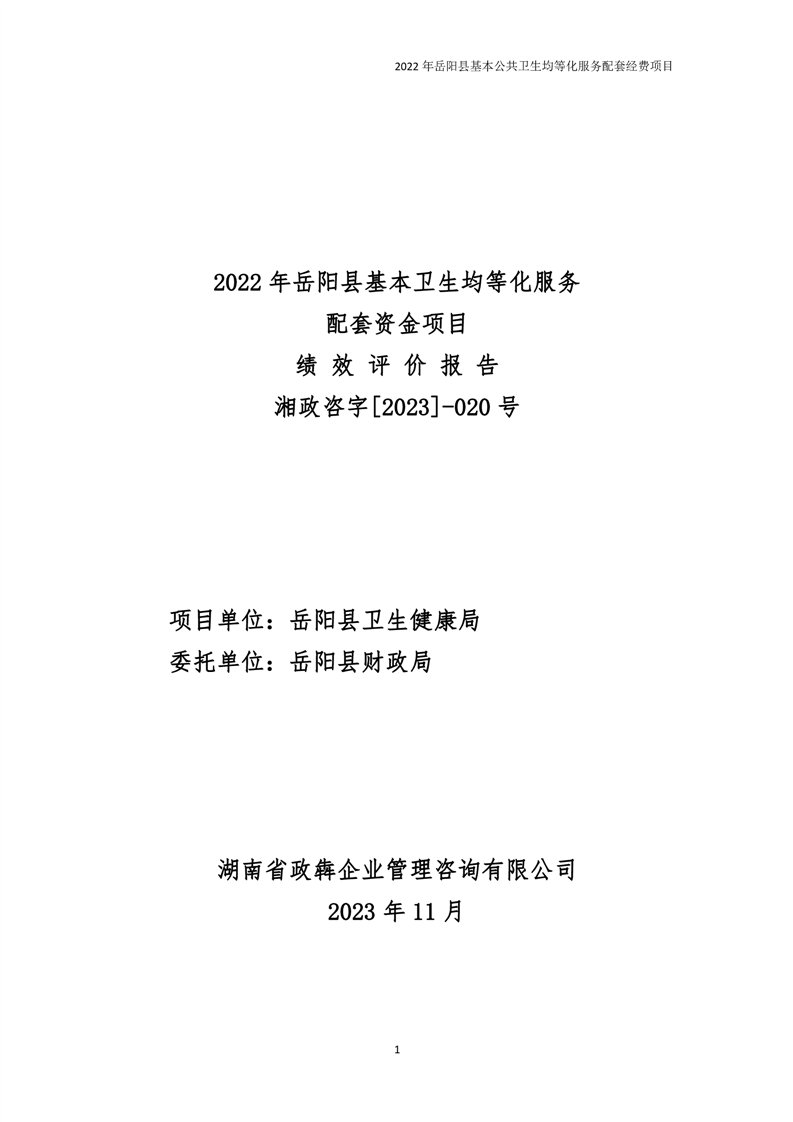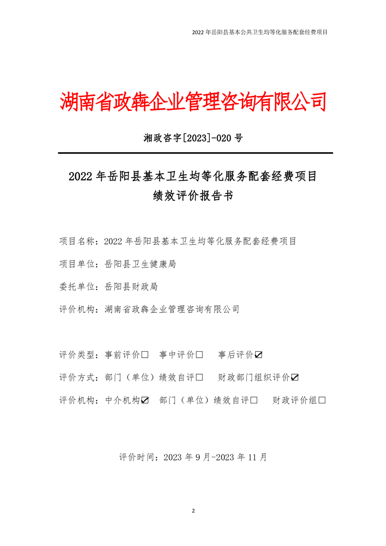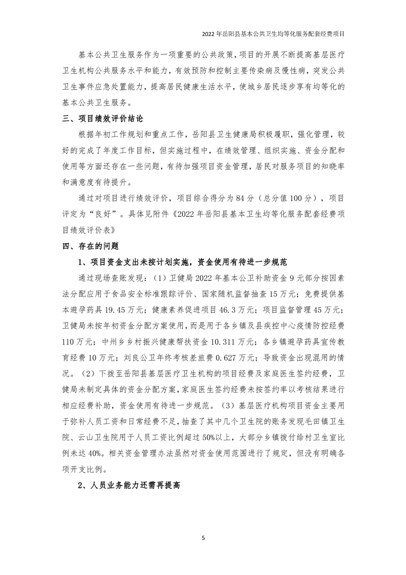 2022年嶽陽縣基本公共衛生均等化服務項目績效評價報告
