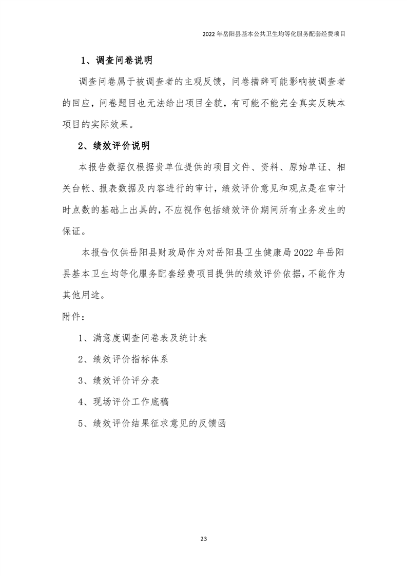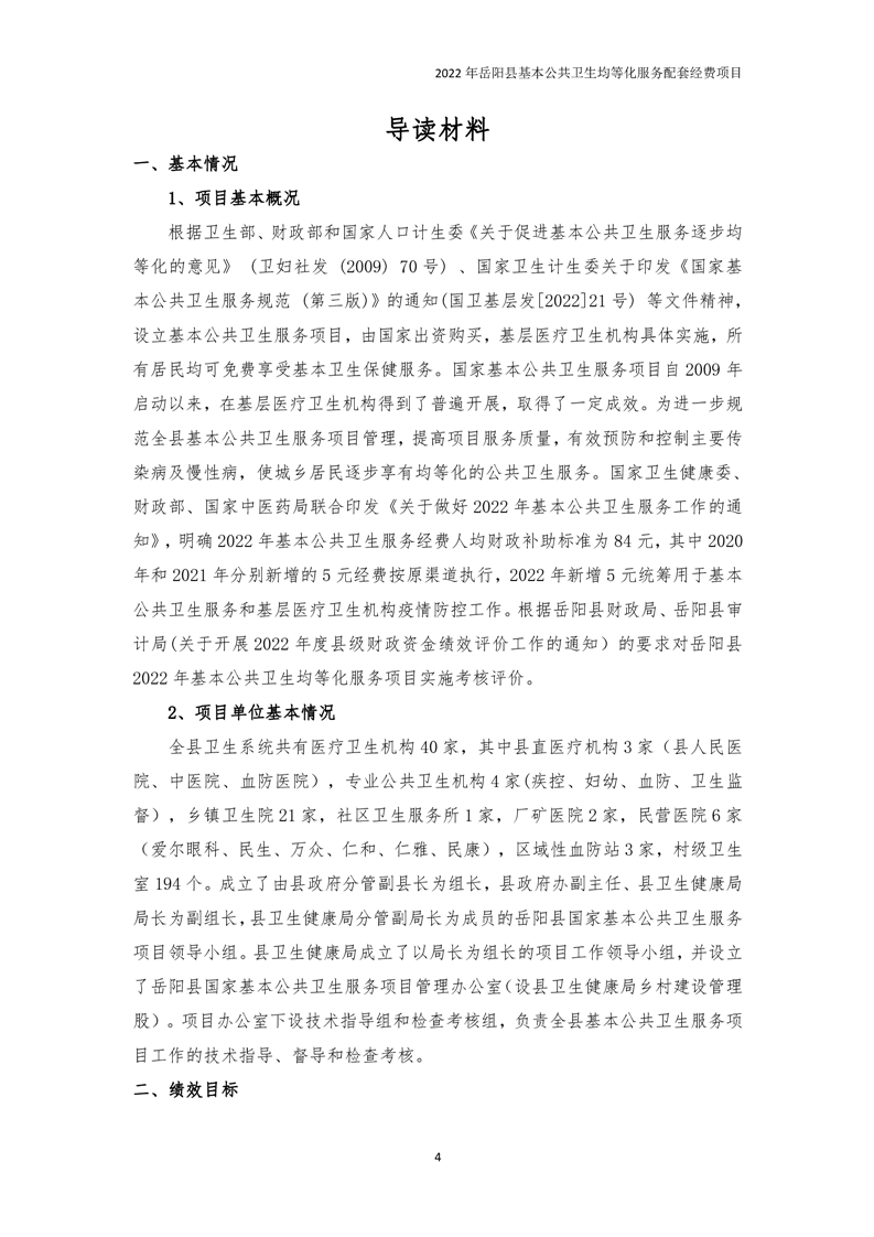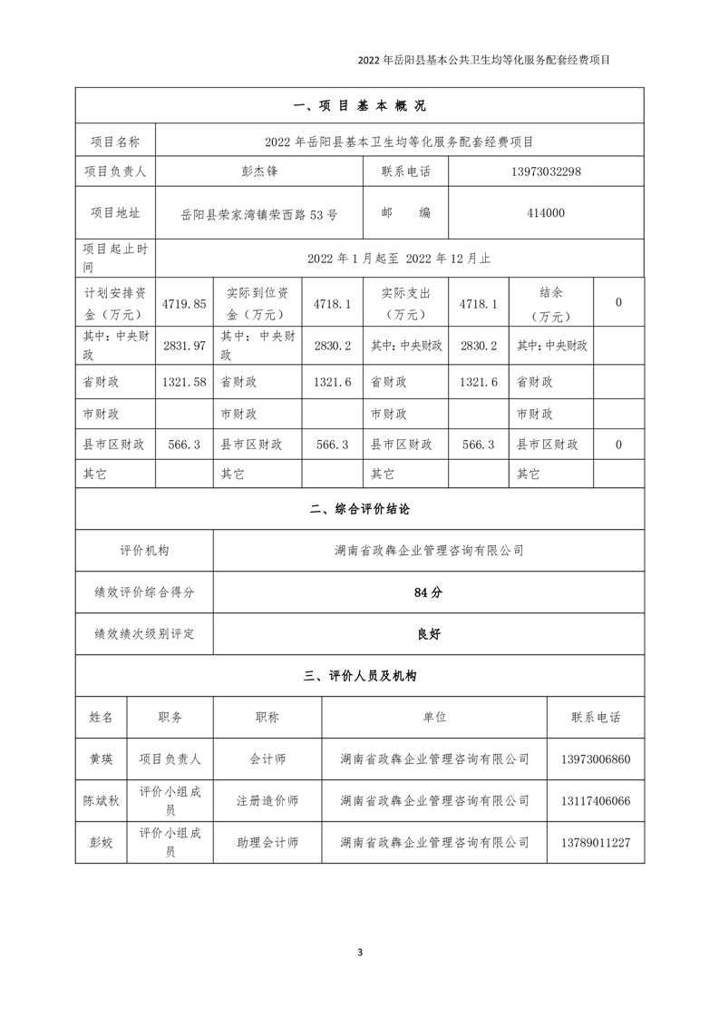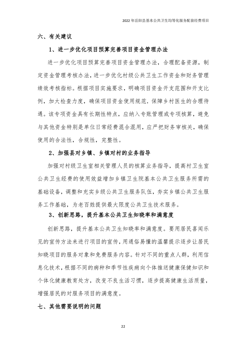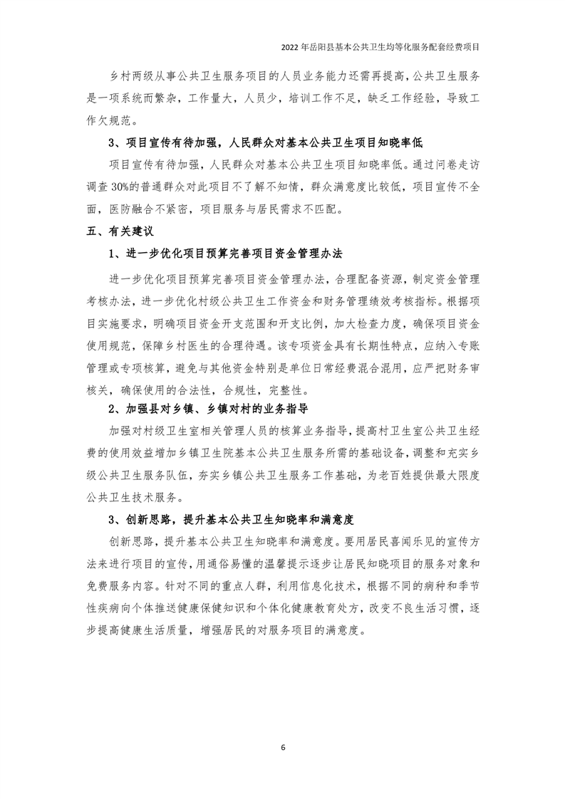 2022年嶽陽縣基本公共衛生均等化服務項目績效評價報告