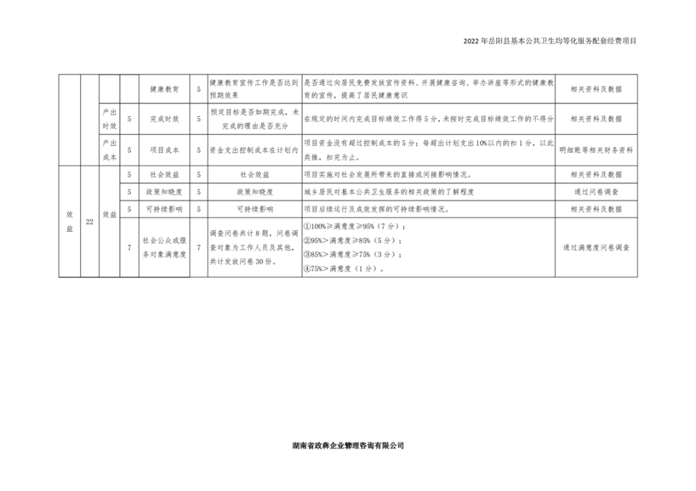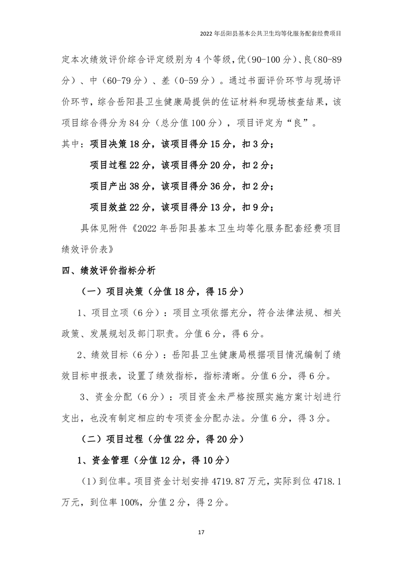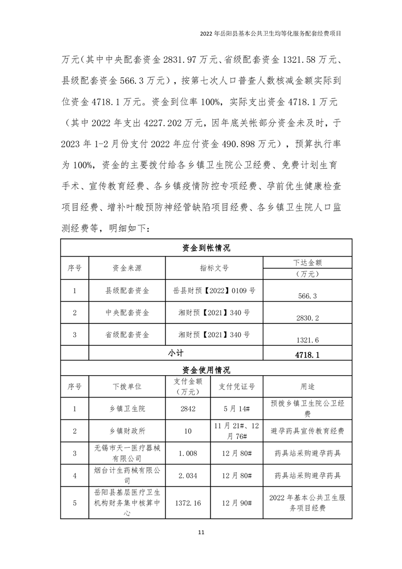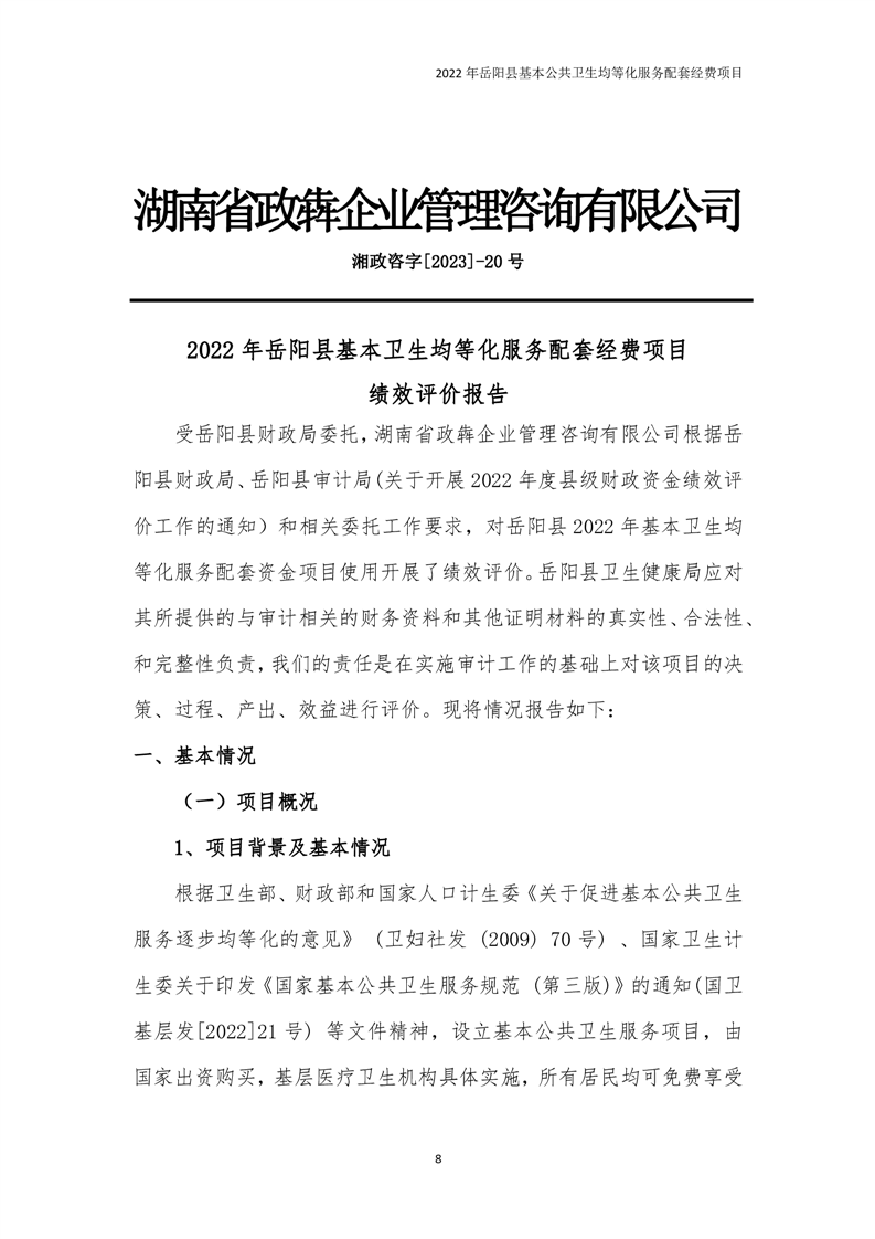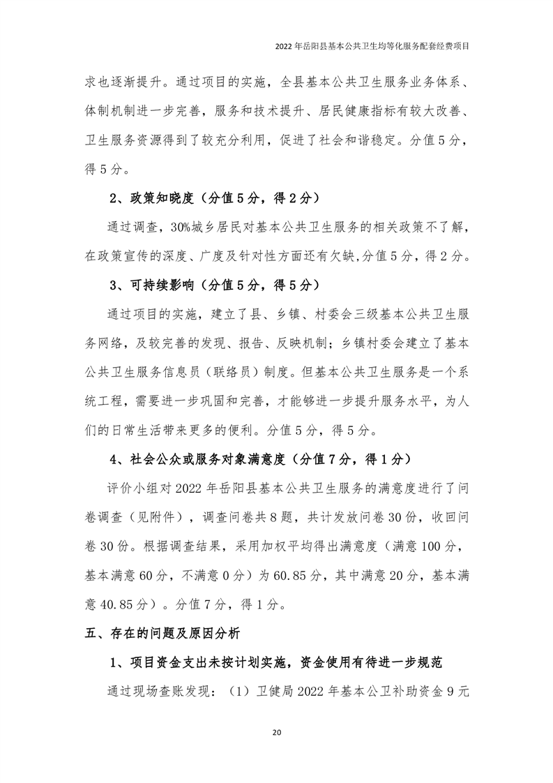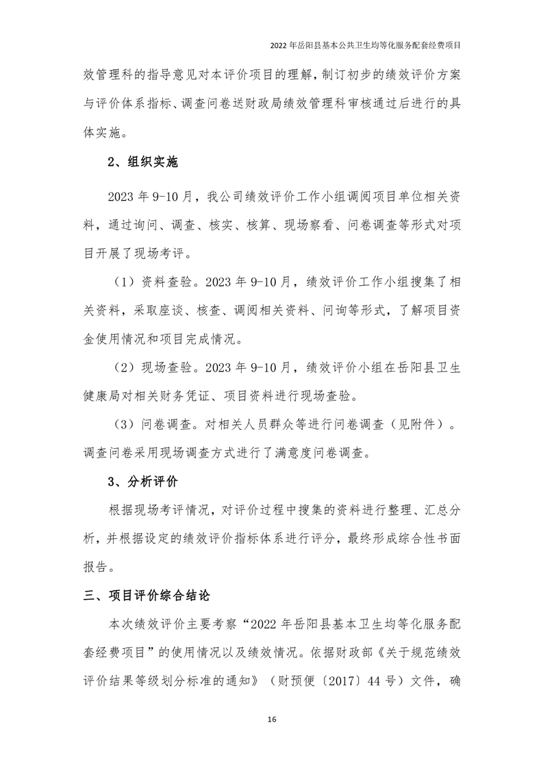 2022年嶽陽縣基本公共衛生均等化服務項目績效評價報告
