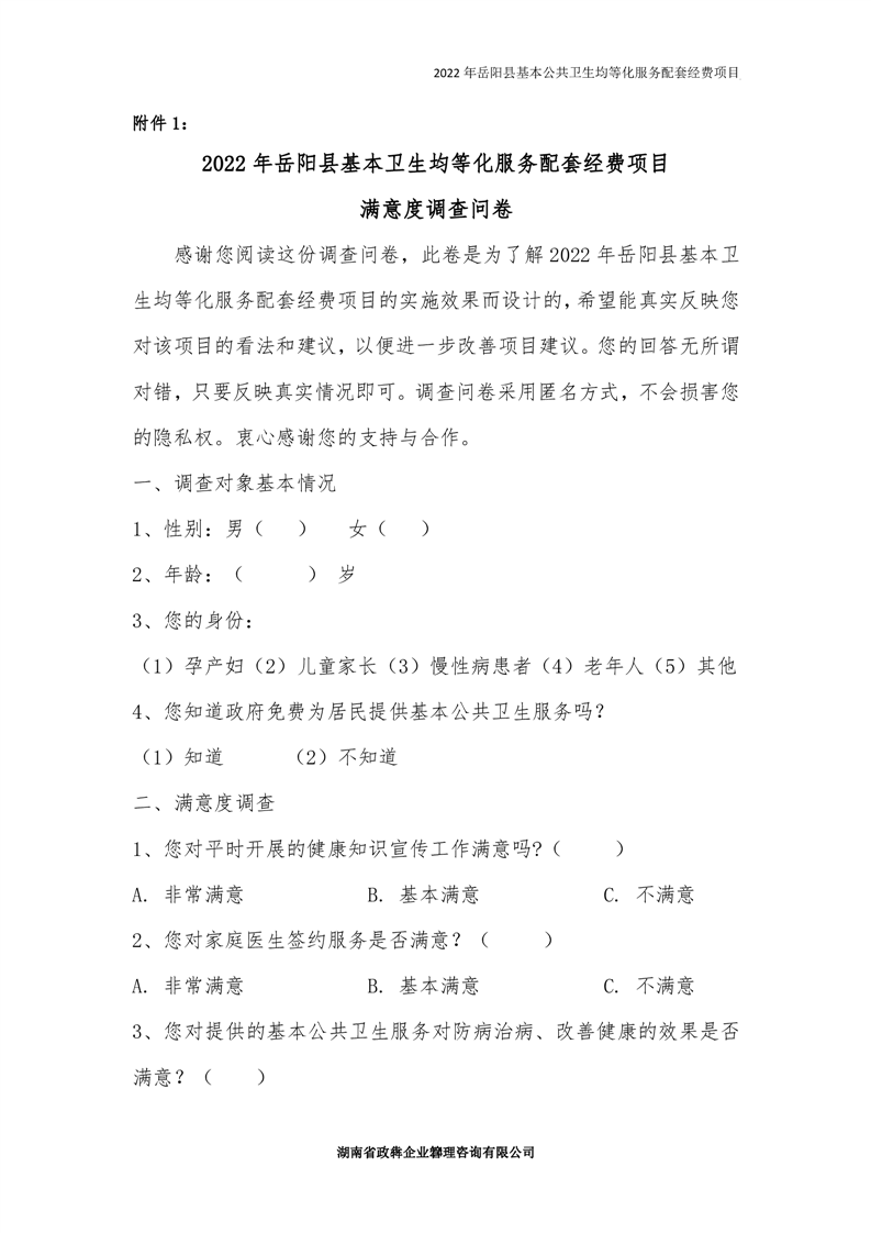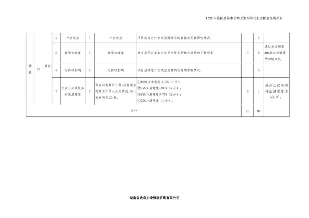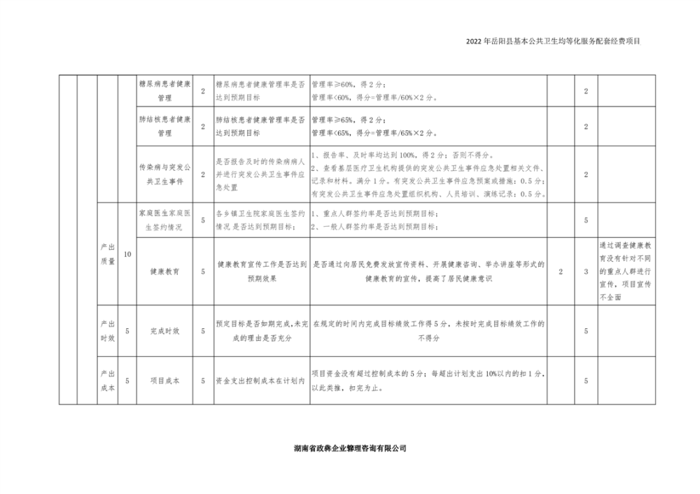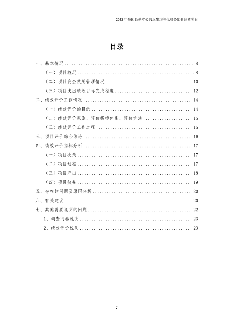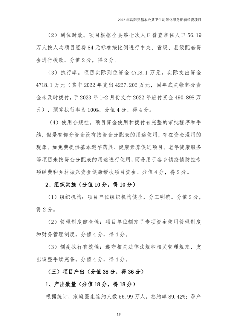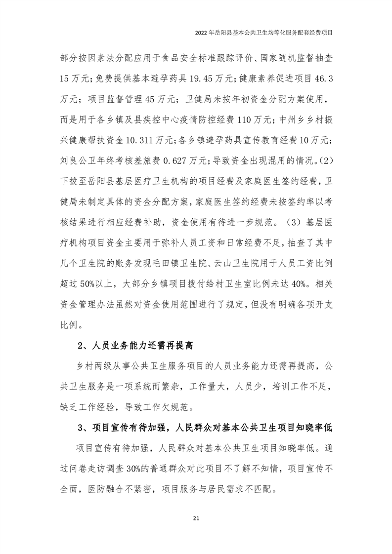 2022年嶽陽縣基本公共衛生均等化服務項目績效評價報告