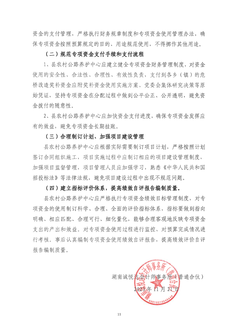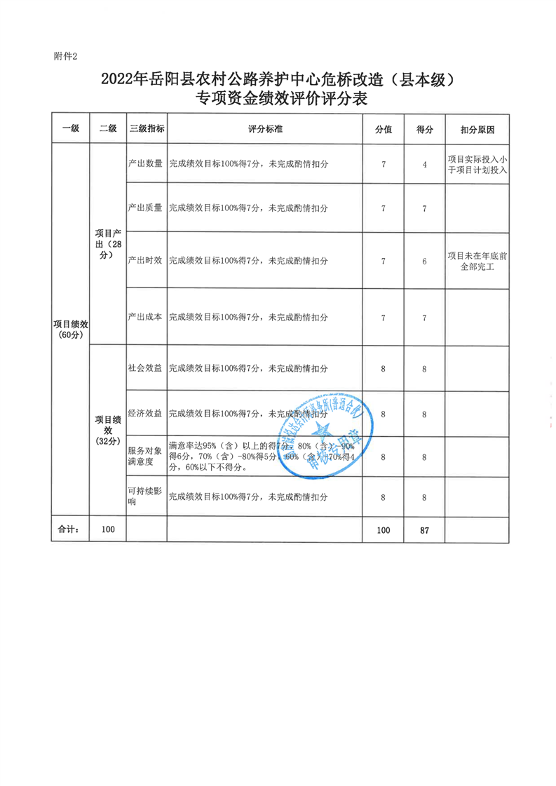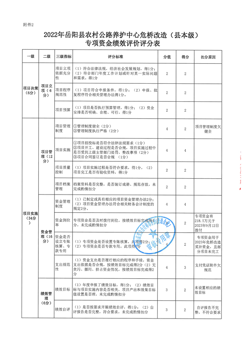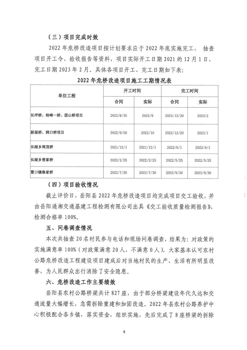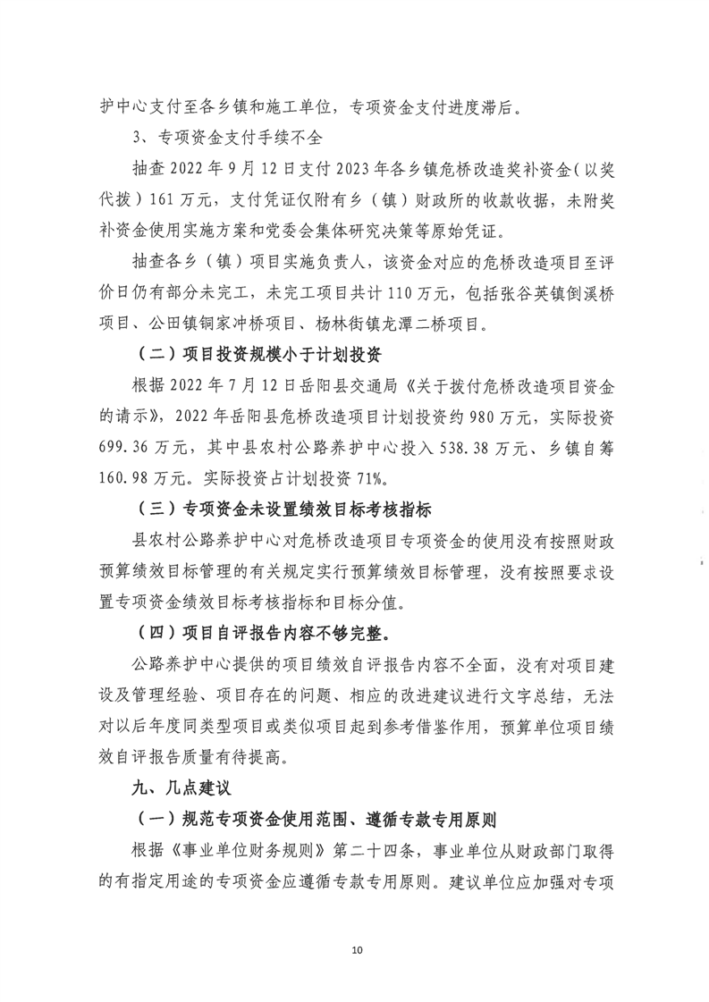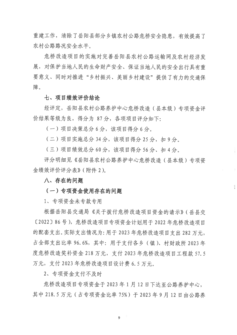 嶽陽縣農村公路養護中心危橋改造(縣本級)專項資金績效評價報告