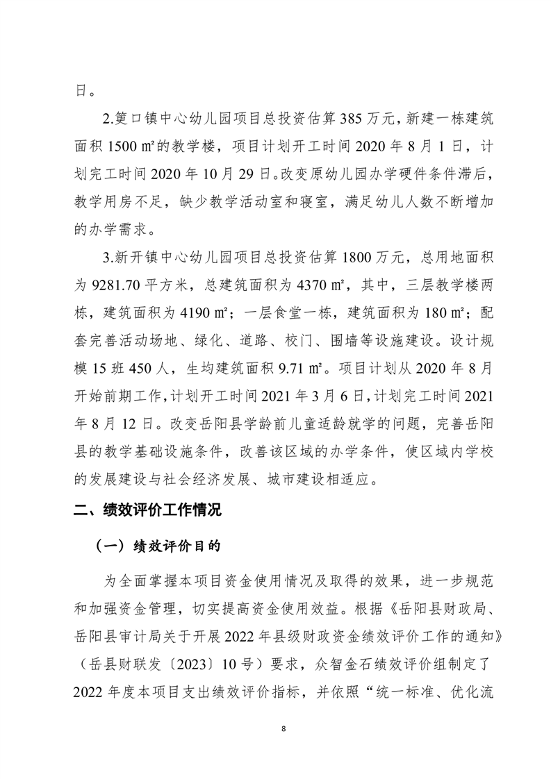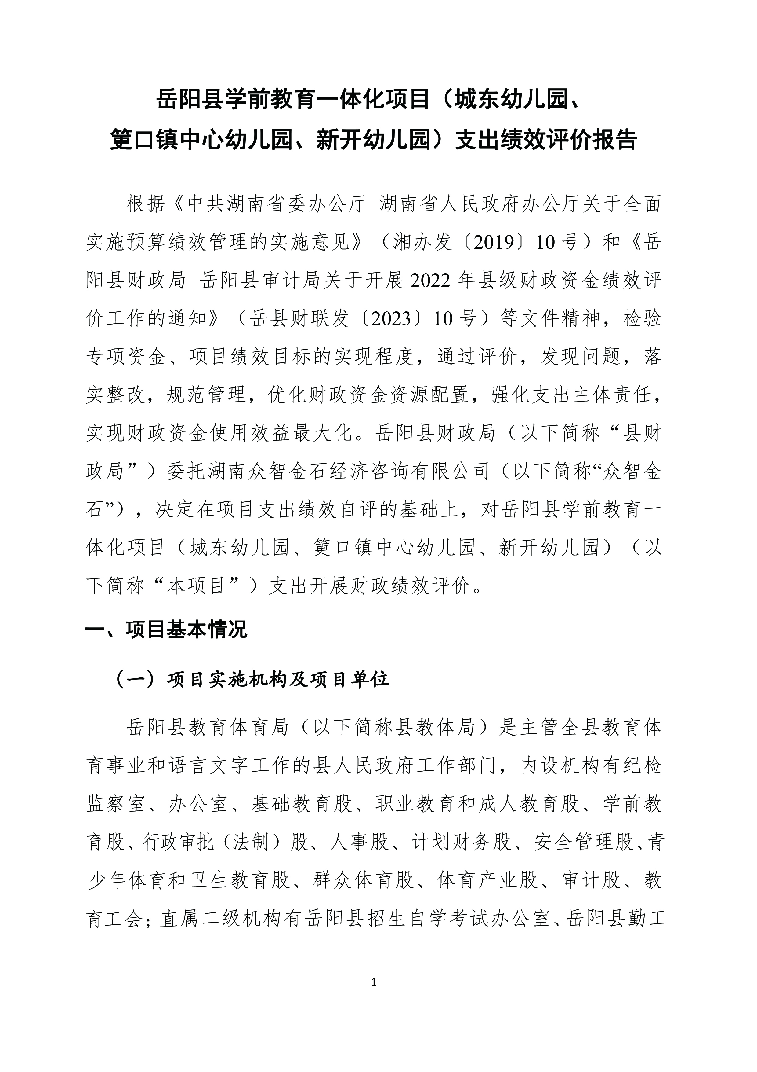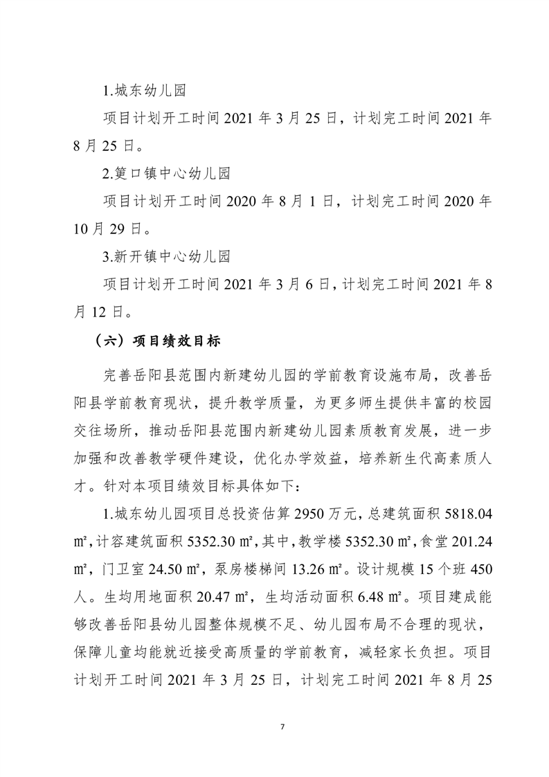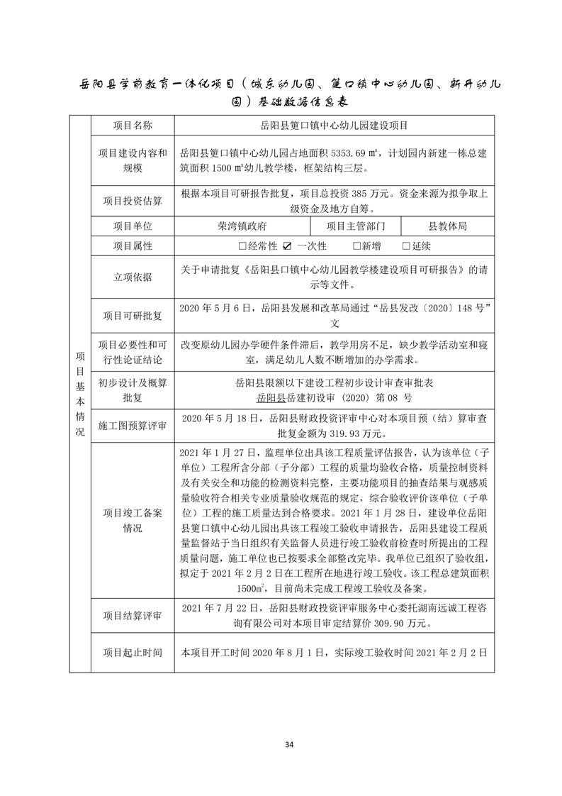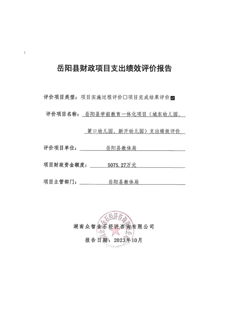 嶽陽縣城東幼兒園、筻口幼兒園、新開幼兒園工程項目支出績效評價報告